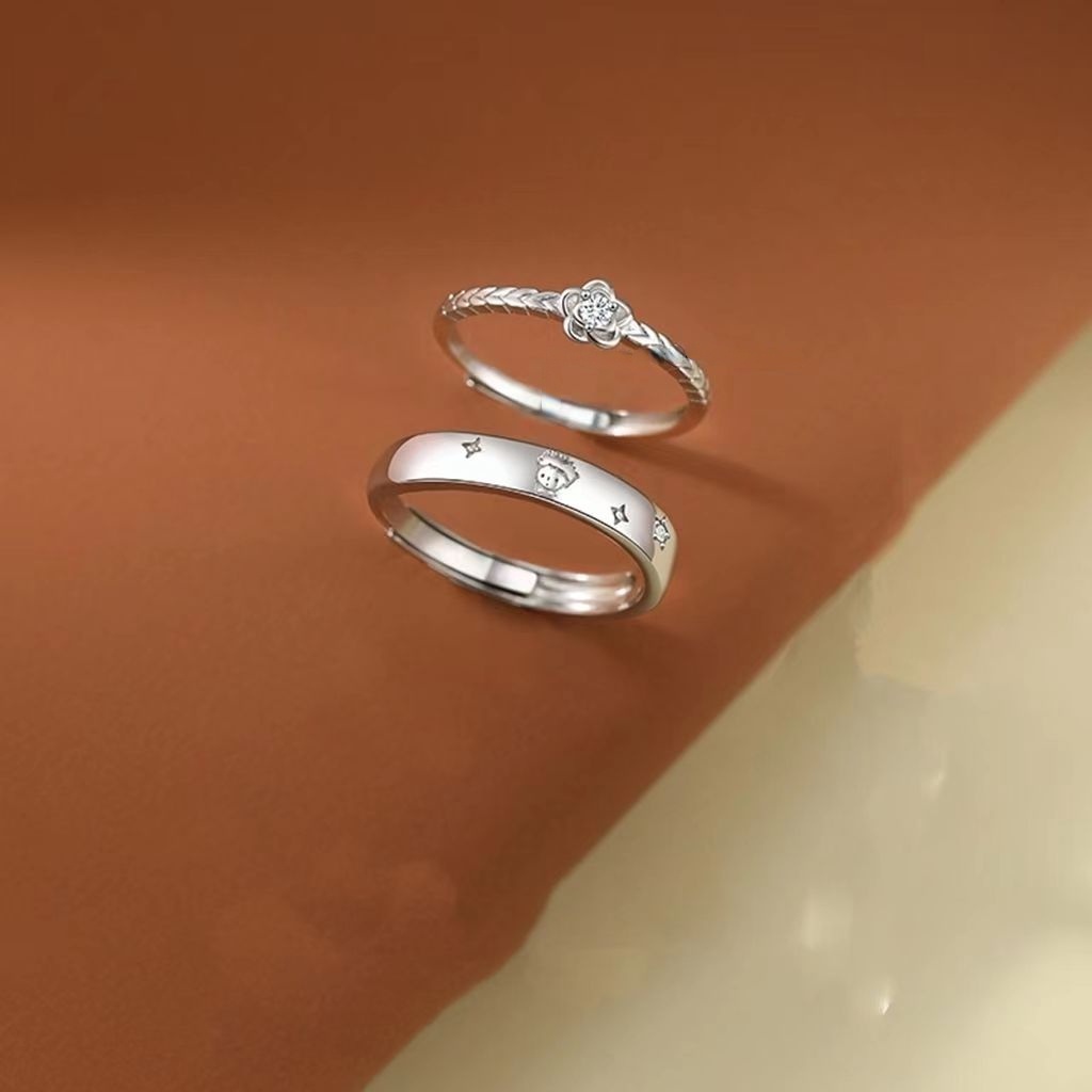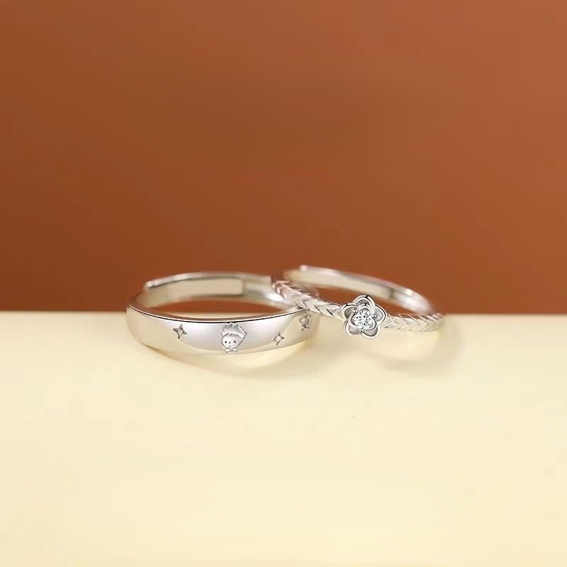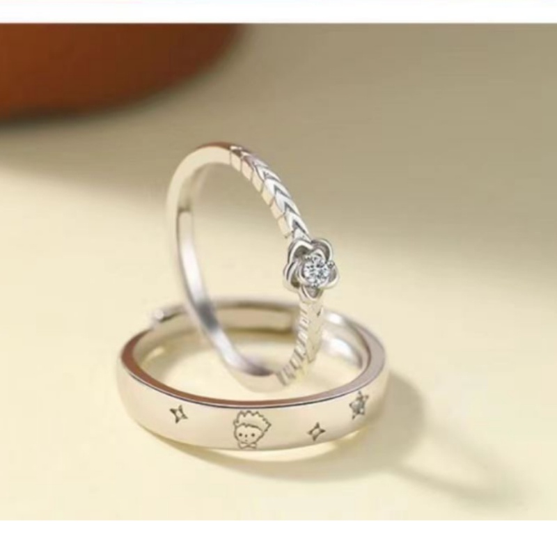 O Pequeno Príncipe E Anel De Casal De Rosa Para Homens Mulheres Um Par De Moda Luxuoso Aberto Incrustado Com Zircônia