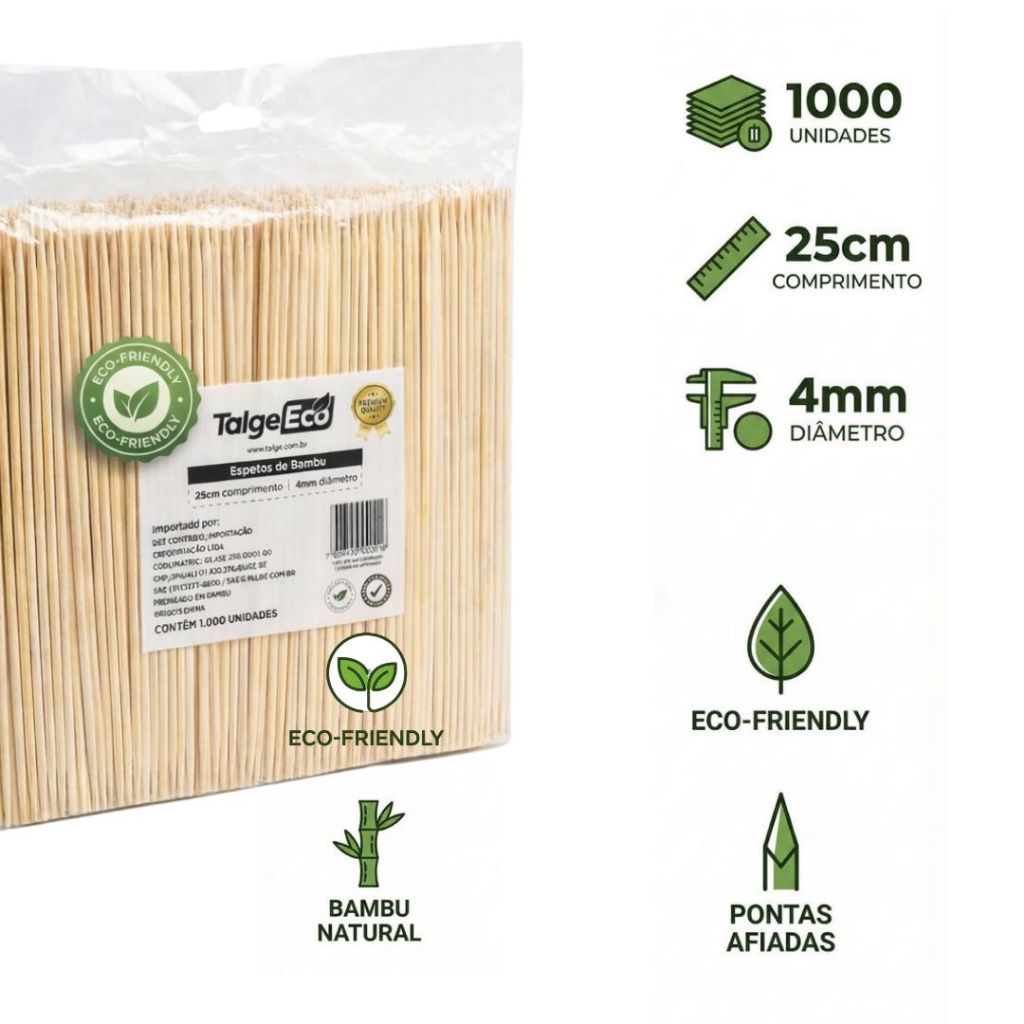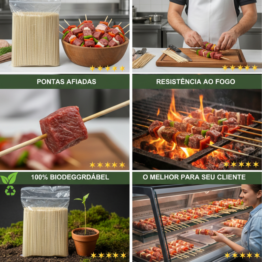 Palito Espeto Bambu Para Churrasco 25cm Espetinho 1000 Unidades