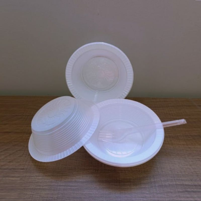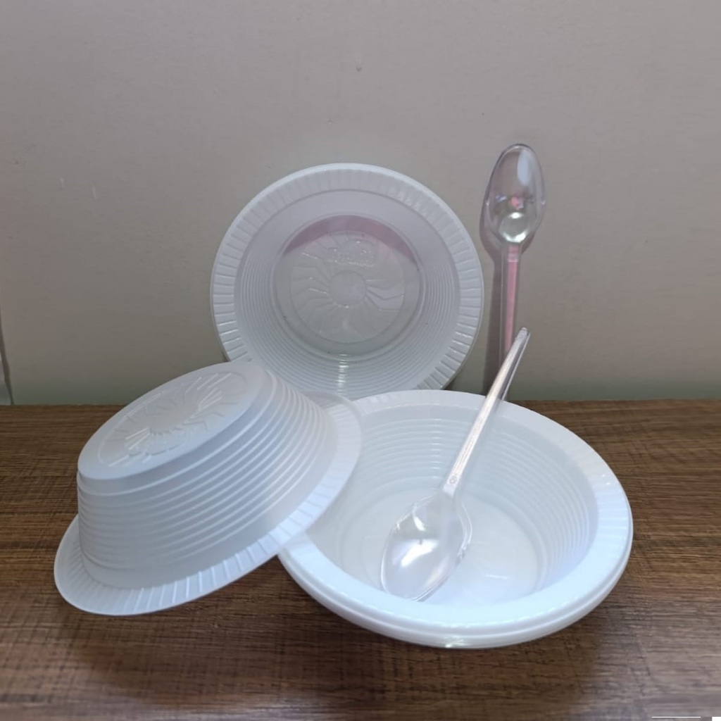 Kit Prato Cumbuca Descartável Funda com Garfo ou Colher Ideal para Festas Molho Patê Bolo Milho