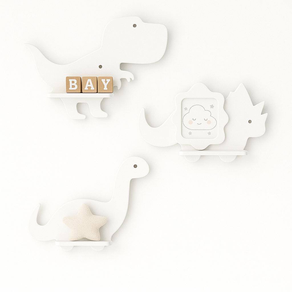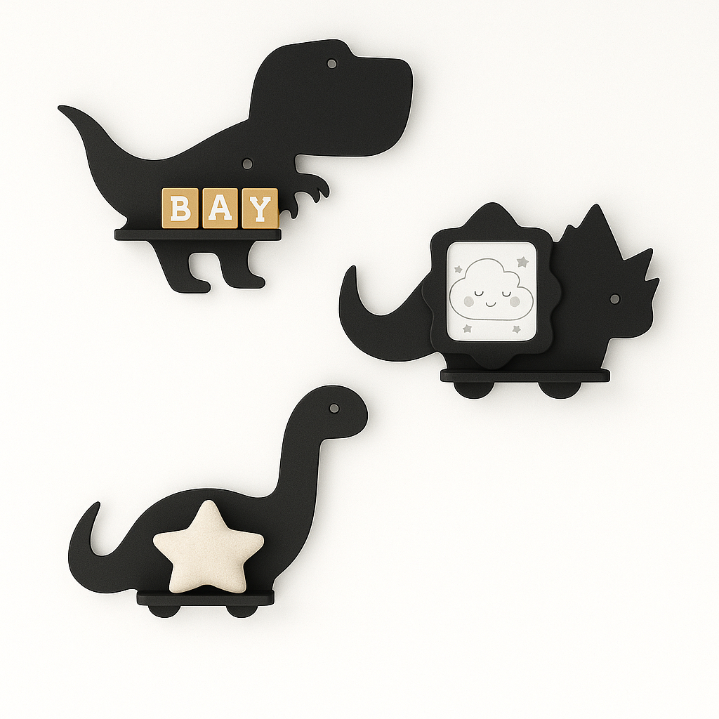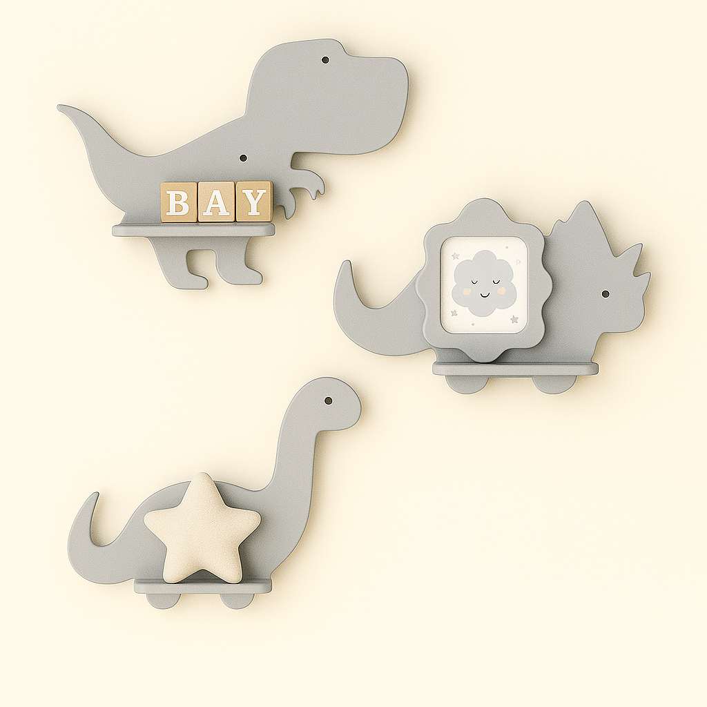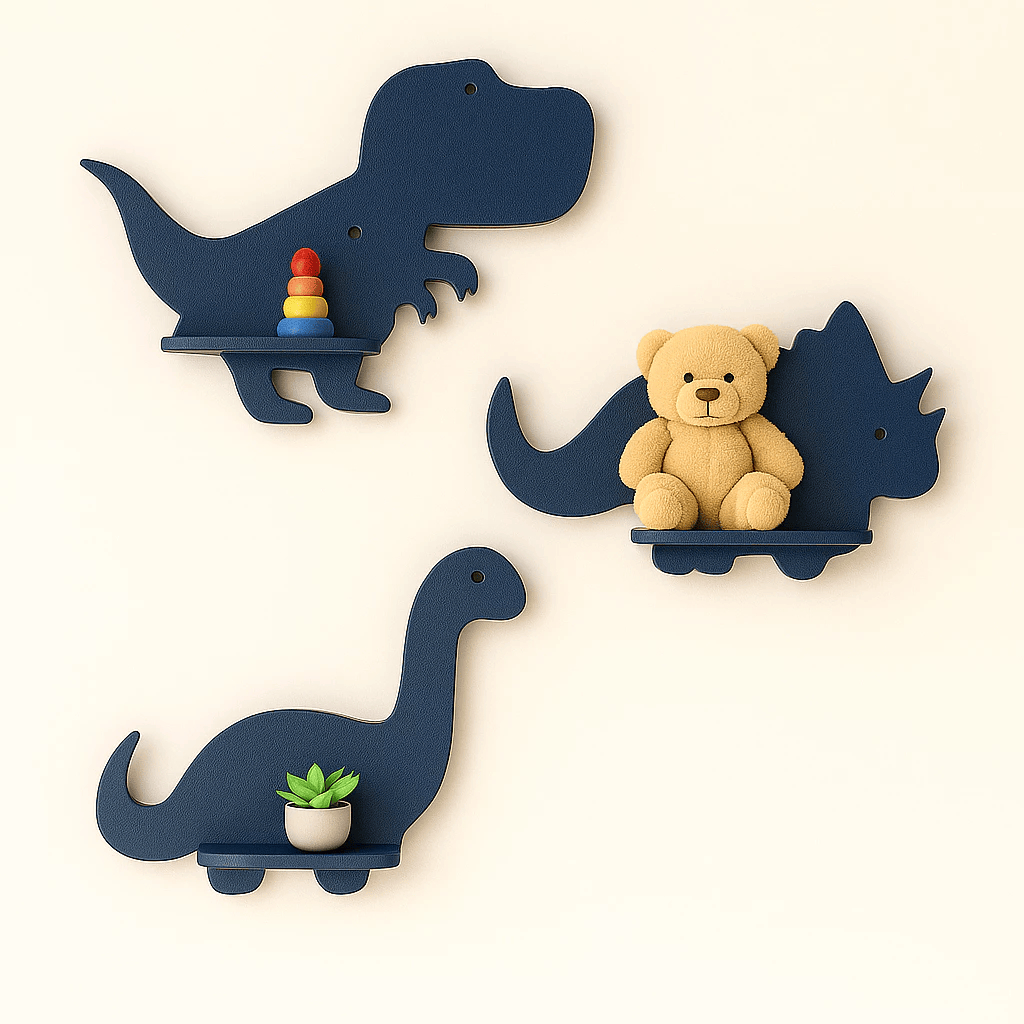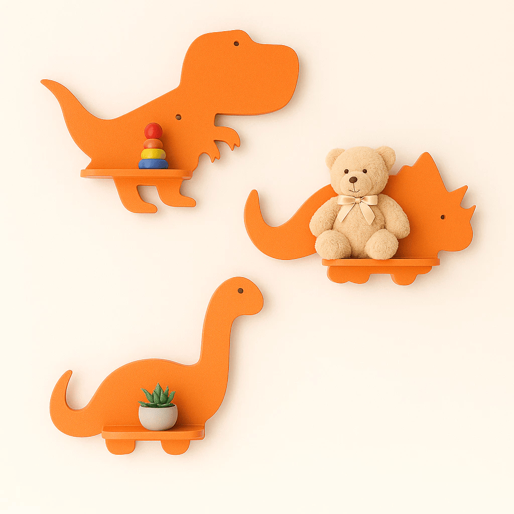 Trio de prateleiras de dinossauro em MDF Kit com 3 prateleiras Dino