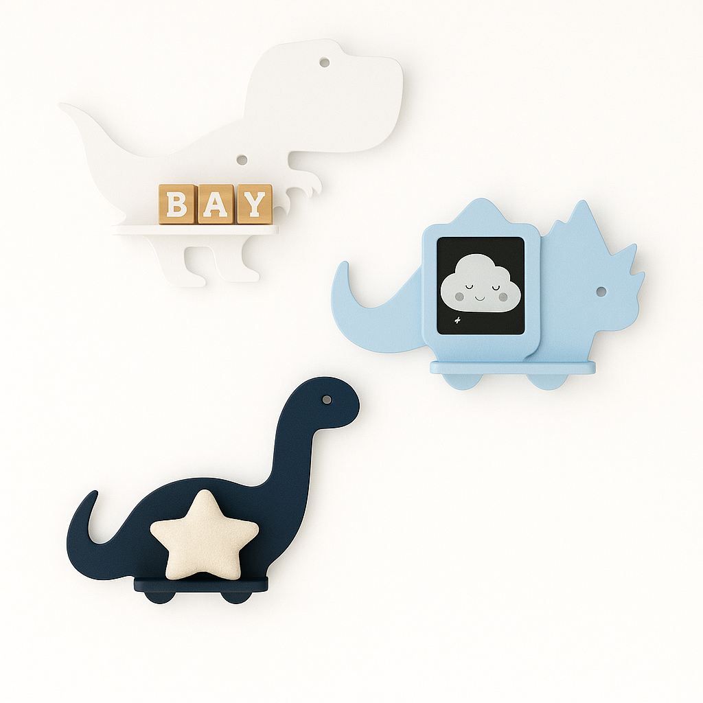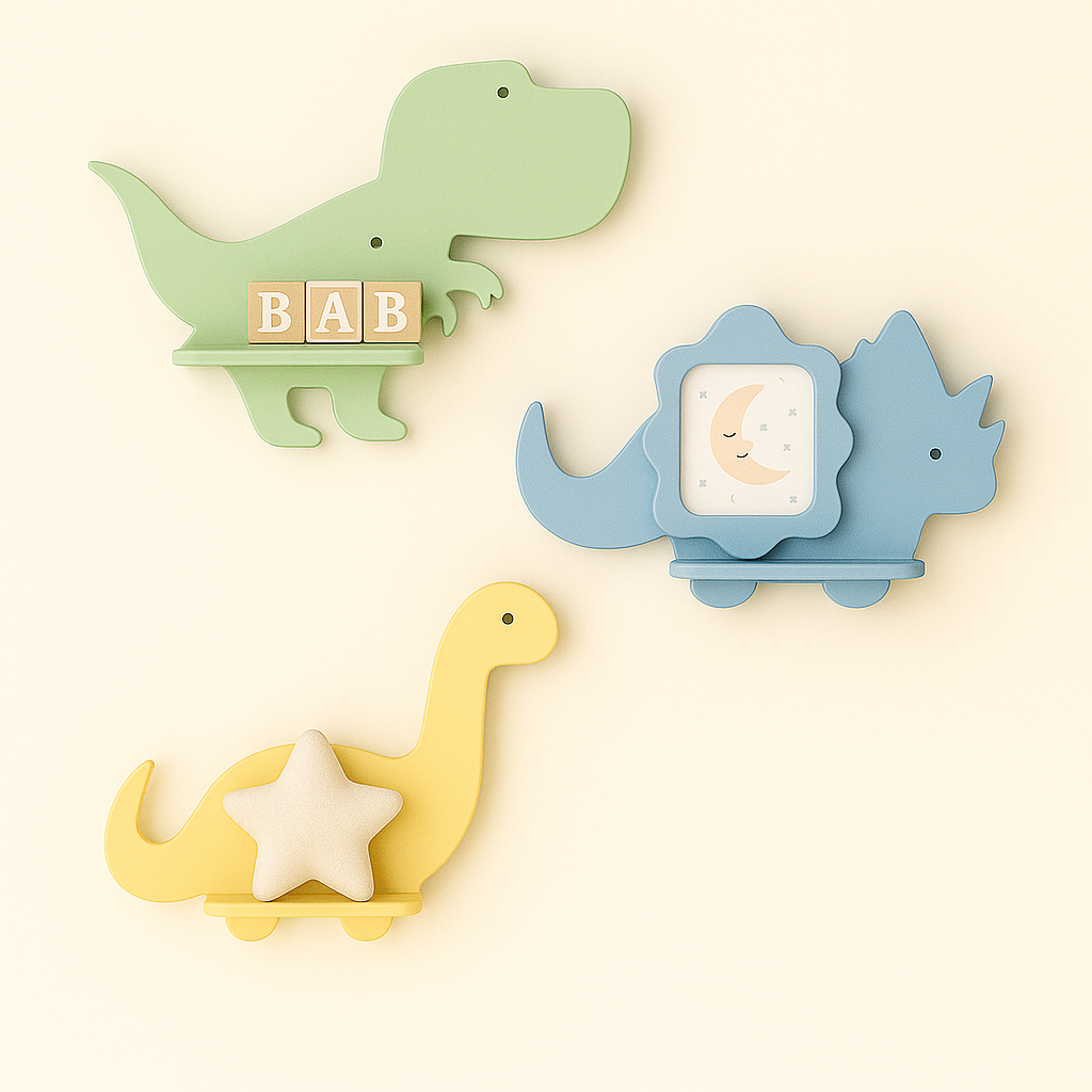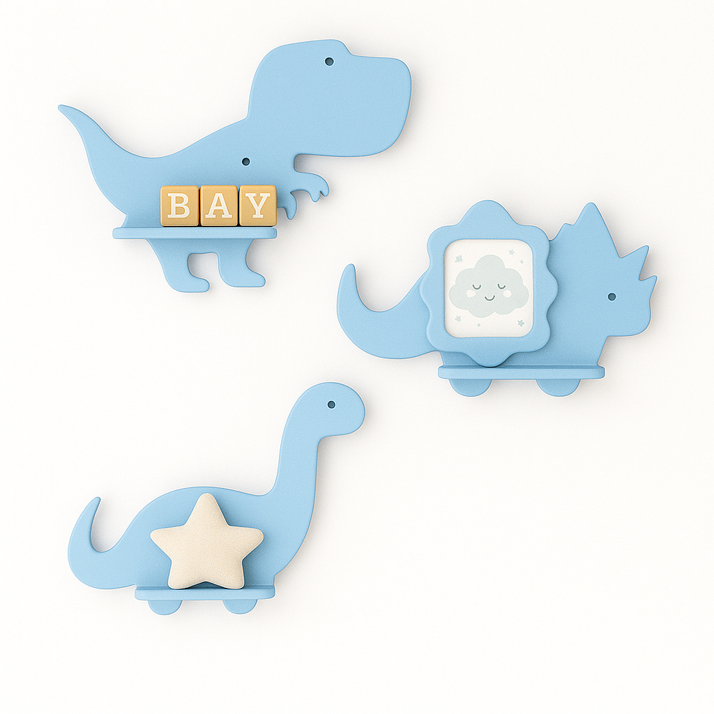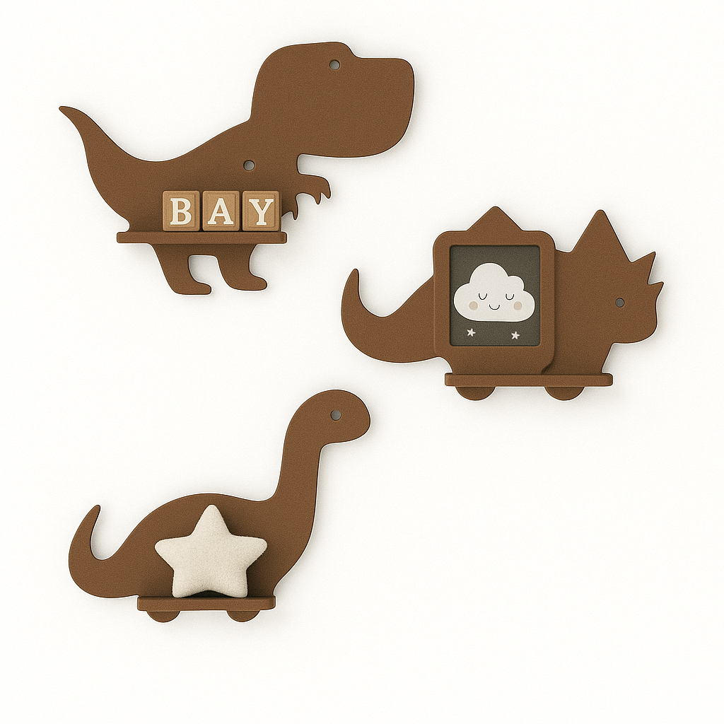 Trio de prateleiras de dinossauro em MDF Kit com 3 prateleiras Dino