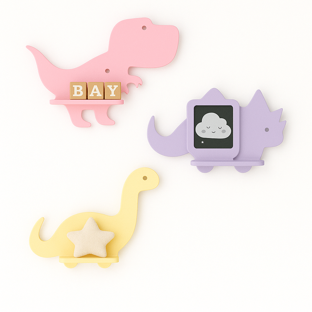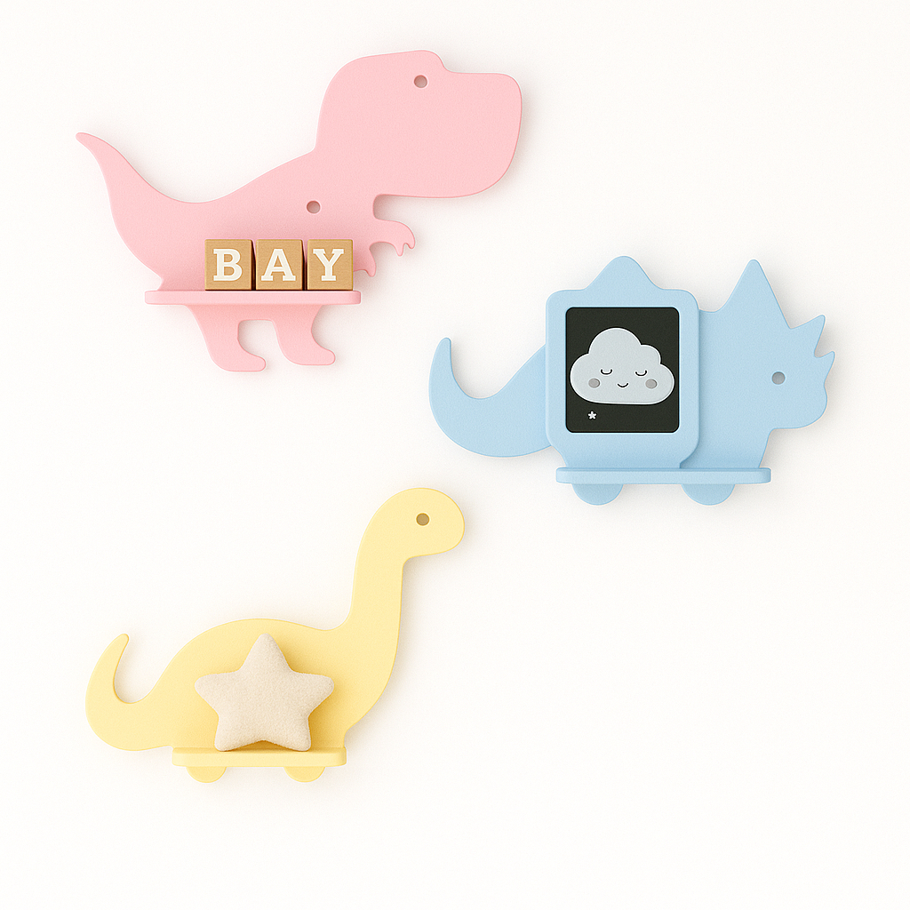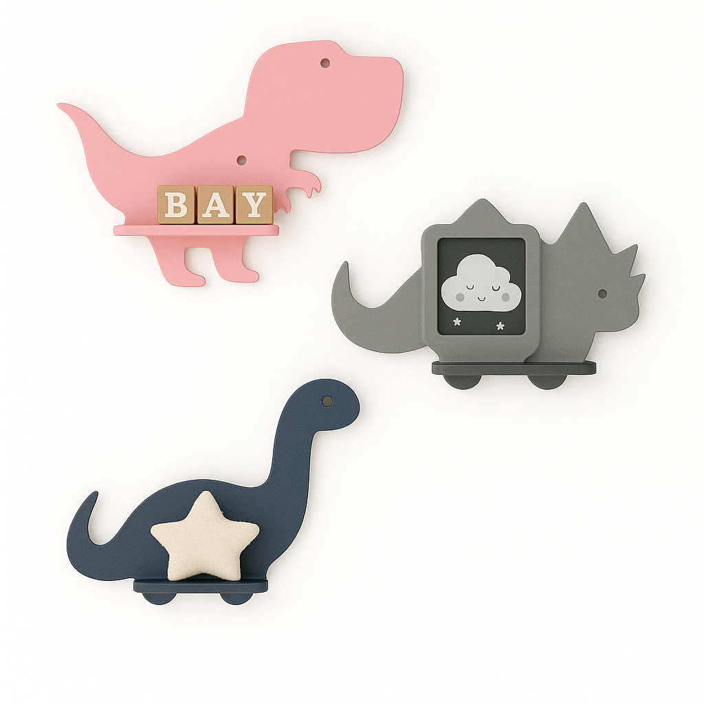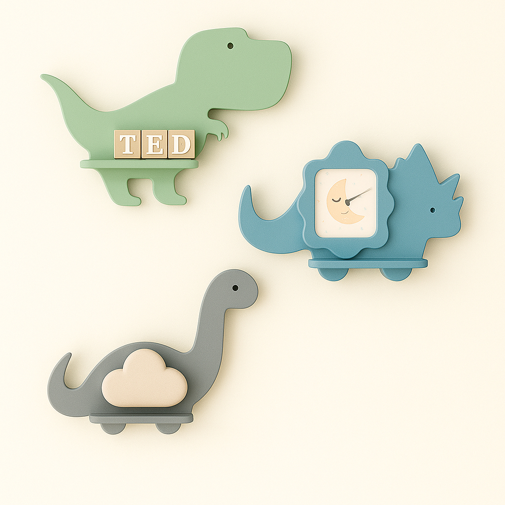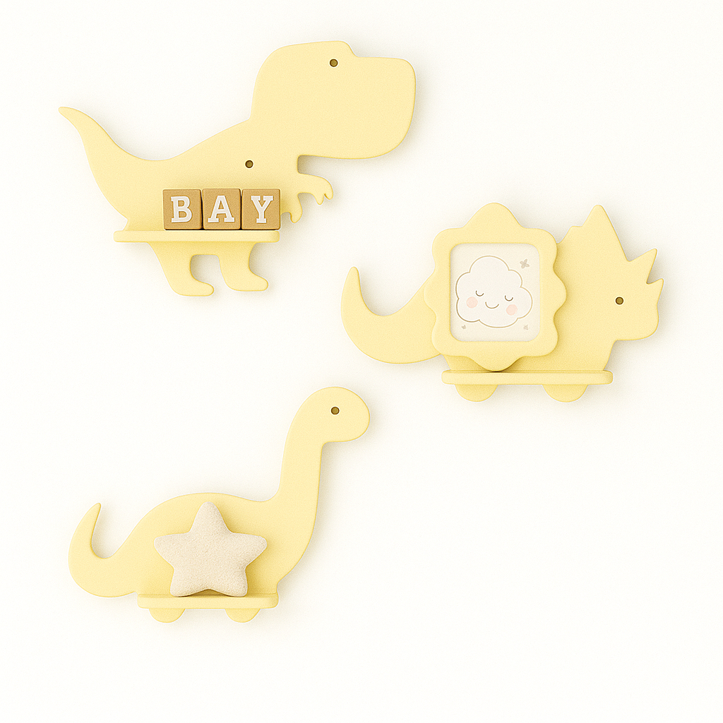 Trio de prateleiras de dinossauro em MDF Kit com 3 prateleiras Dino