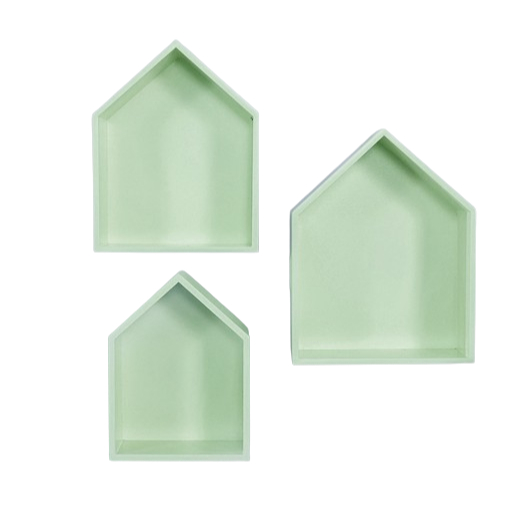 Trio nichos casinha P M e G em MDF - VERDE