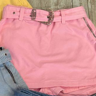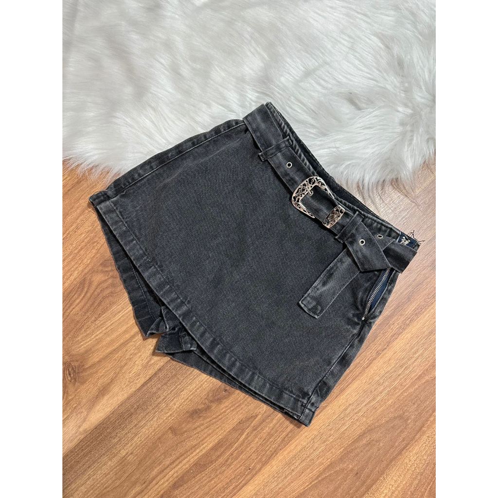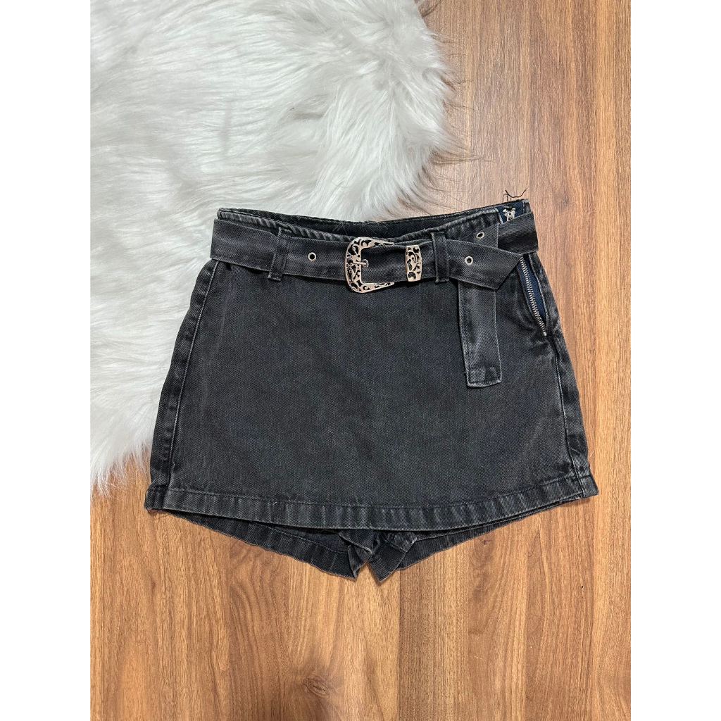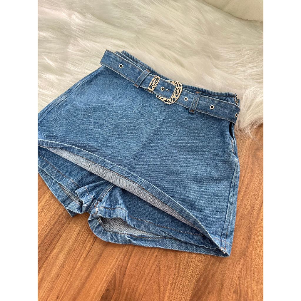 Short Saia Jeans com cinto shorts saia citura alto mon Femininas
