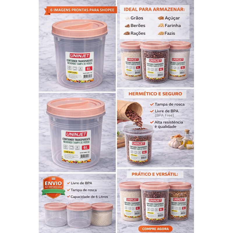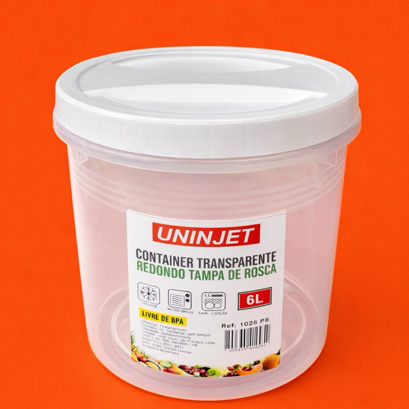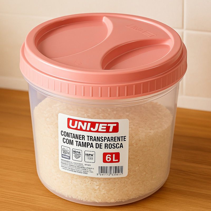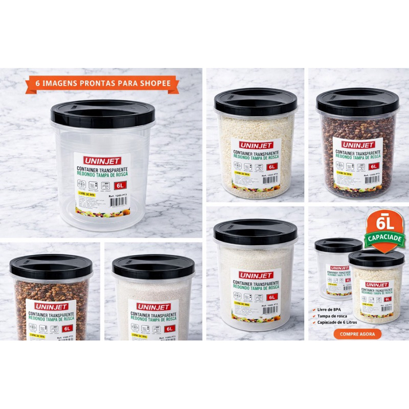 Pote de Plástico Com Rosca 6L Organizador Multiuso Mantimento Porta Cozinha Armazenamento