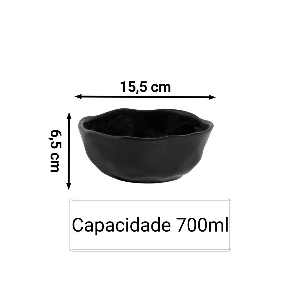 Bowl Orgânico 700ml Cerâmica Esmaltada Preto Fosco