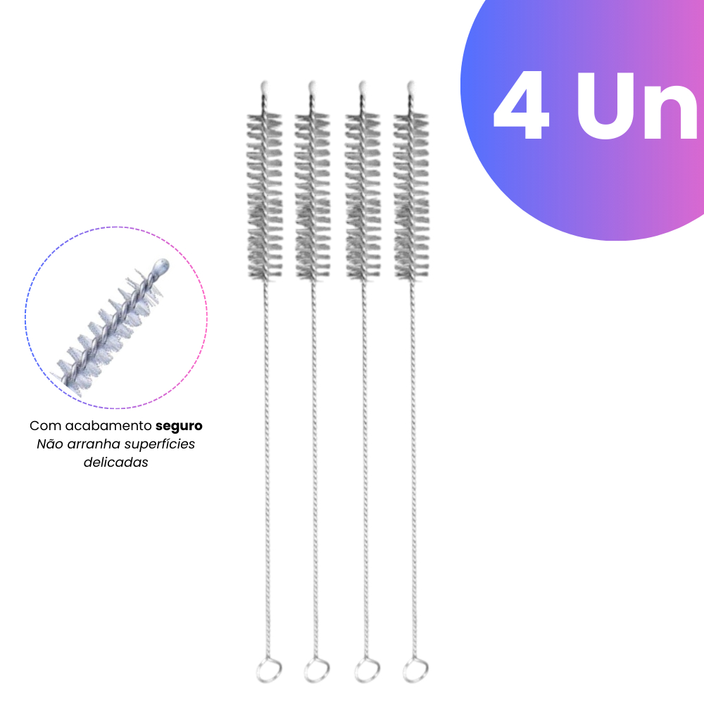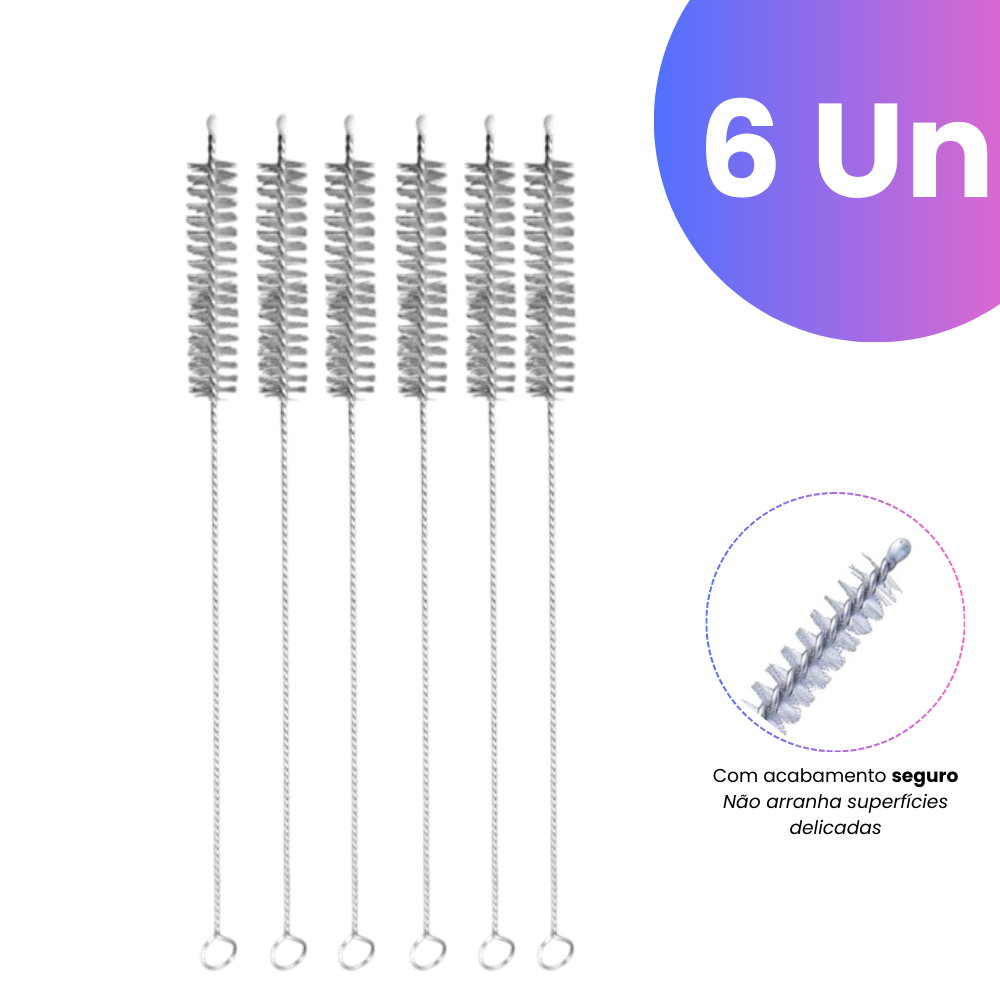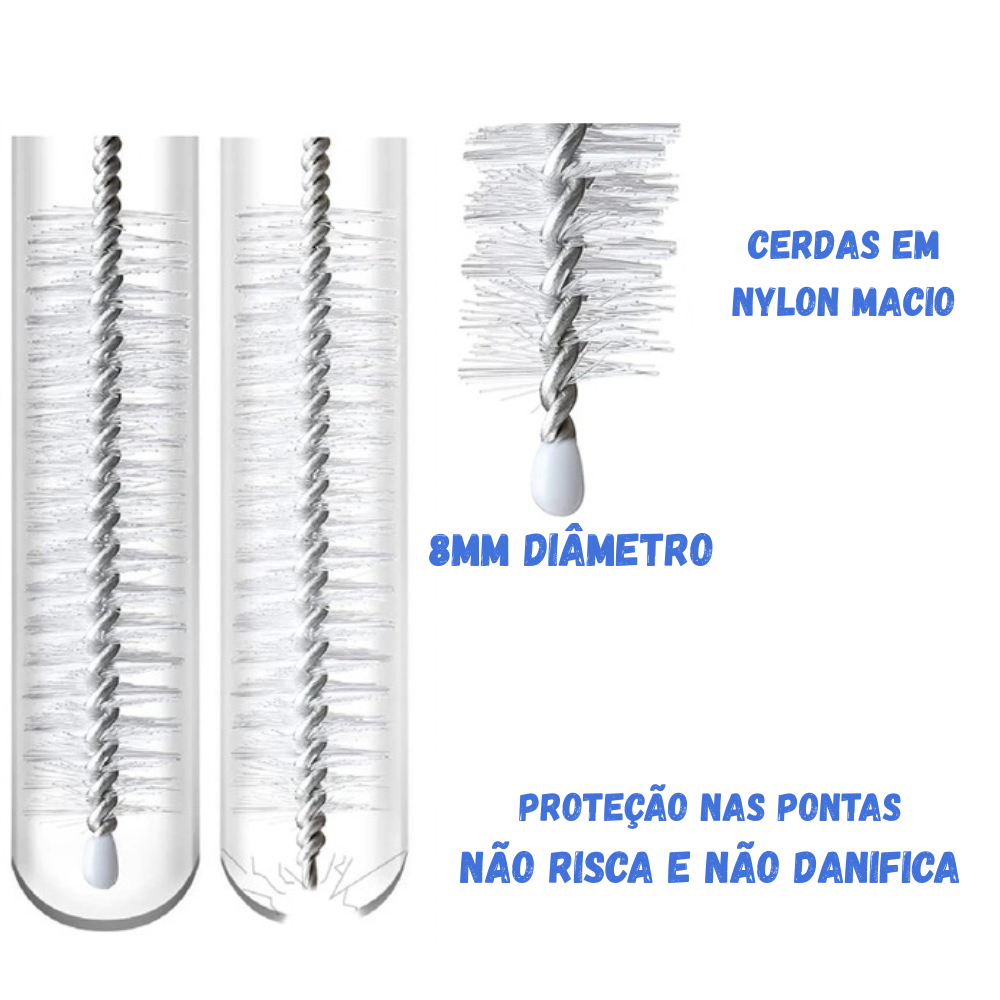 Kit Escova Flexível Inox Limpeza Canudo Ecológico Escovinha Para Limpar Ideal Canudos e Mamadeiras