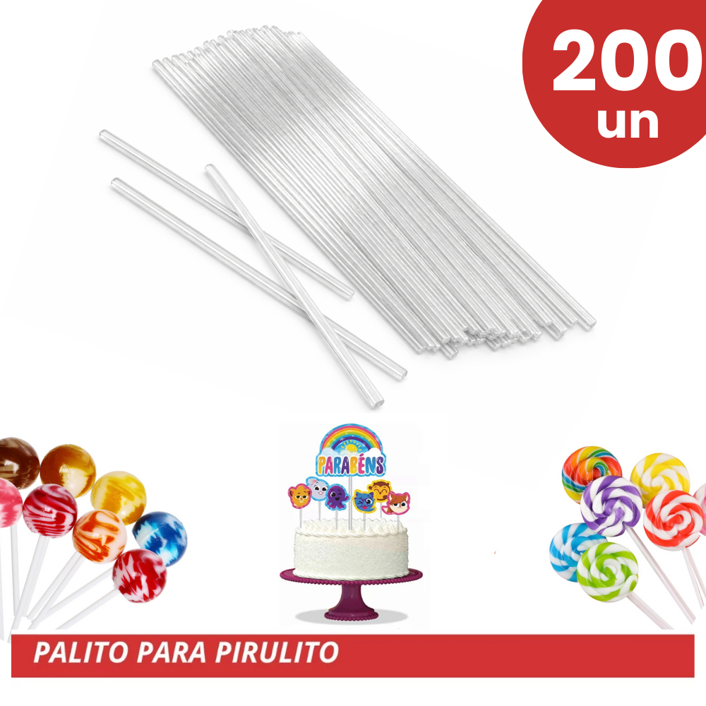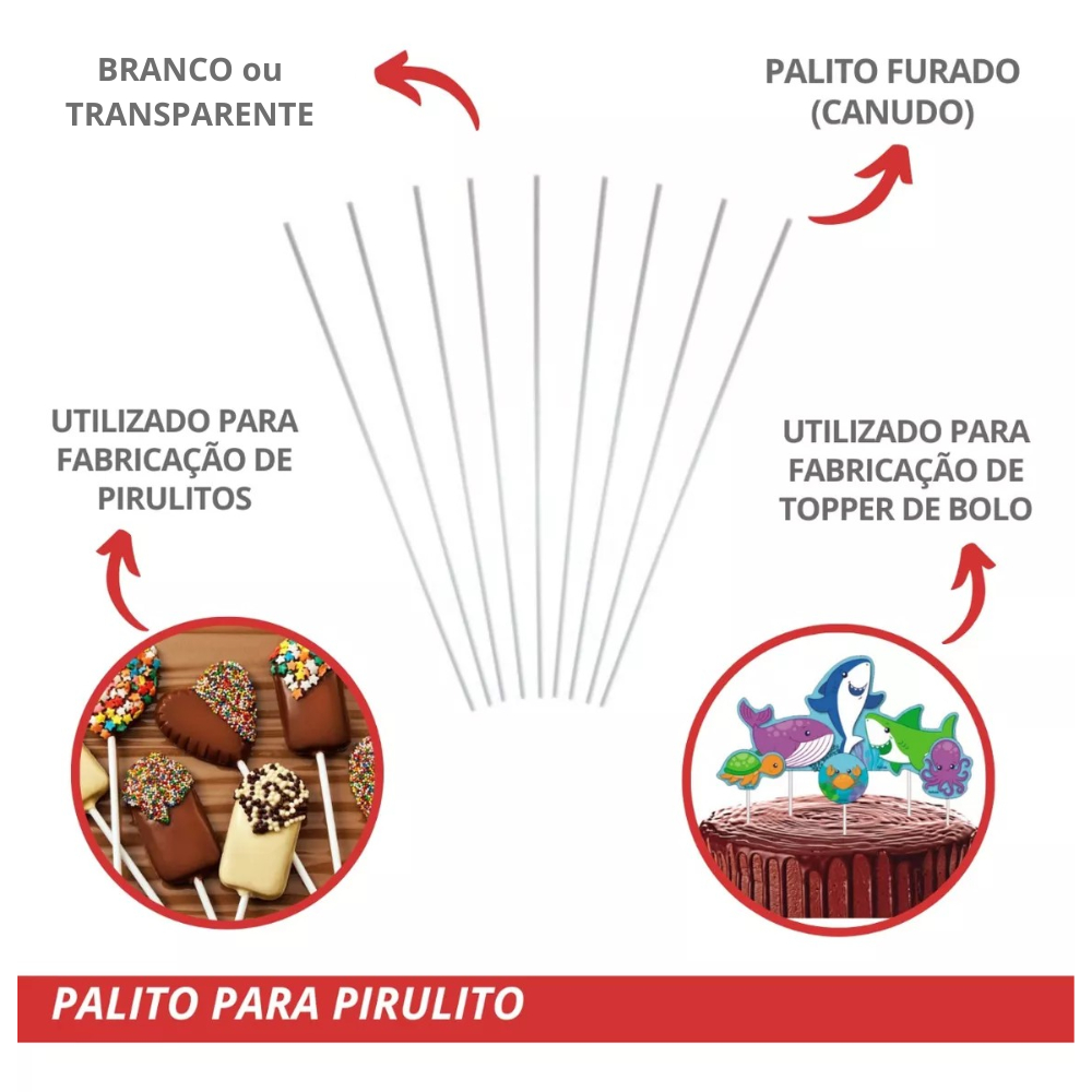 Palito Pirulito 14cm 4mm Cake Pop Pirulito Chocolate Confeitaria Topo de Bolo Branco Transparente