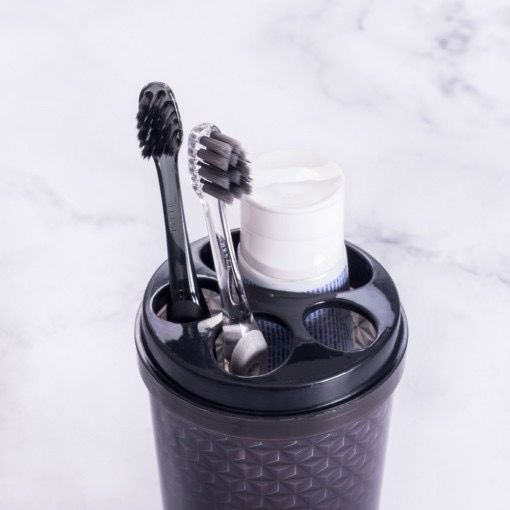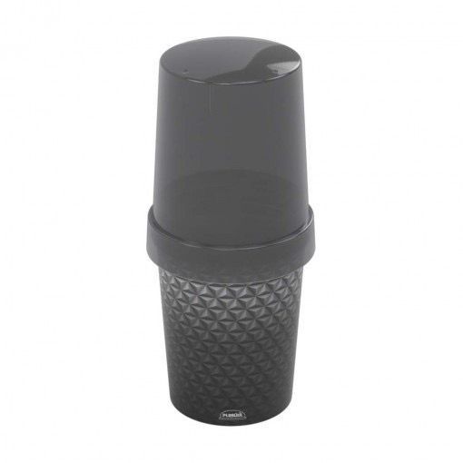 Porta Escova Dental De Pia Plastico Redondo Com Tampa 430ml