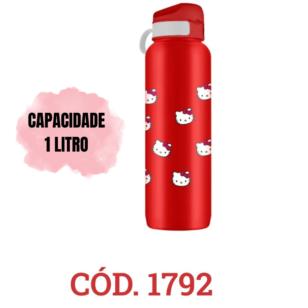 Garrafa de água Squeeze Garrafinha Hello Kitty Infantil 500ml 750ml 800ml ou 1 Litro