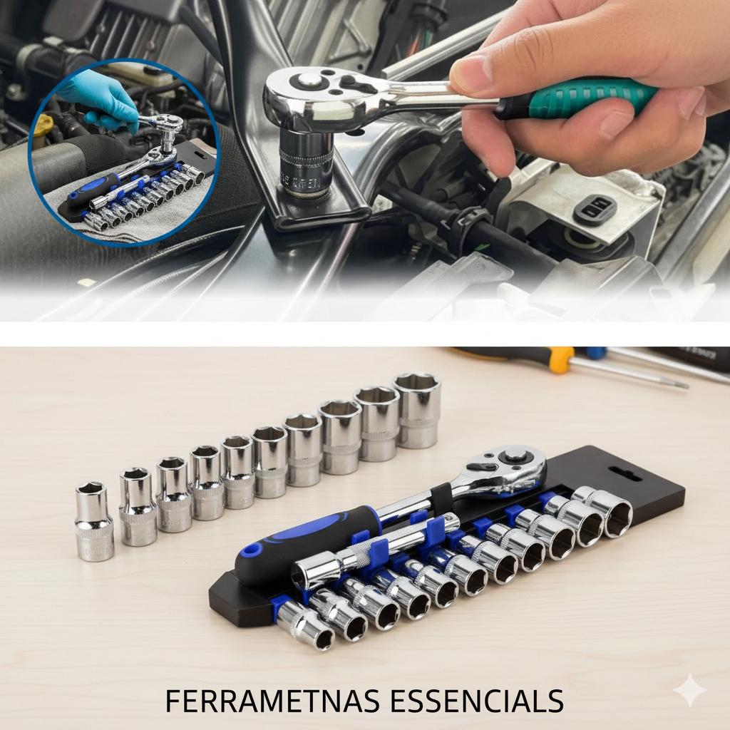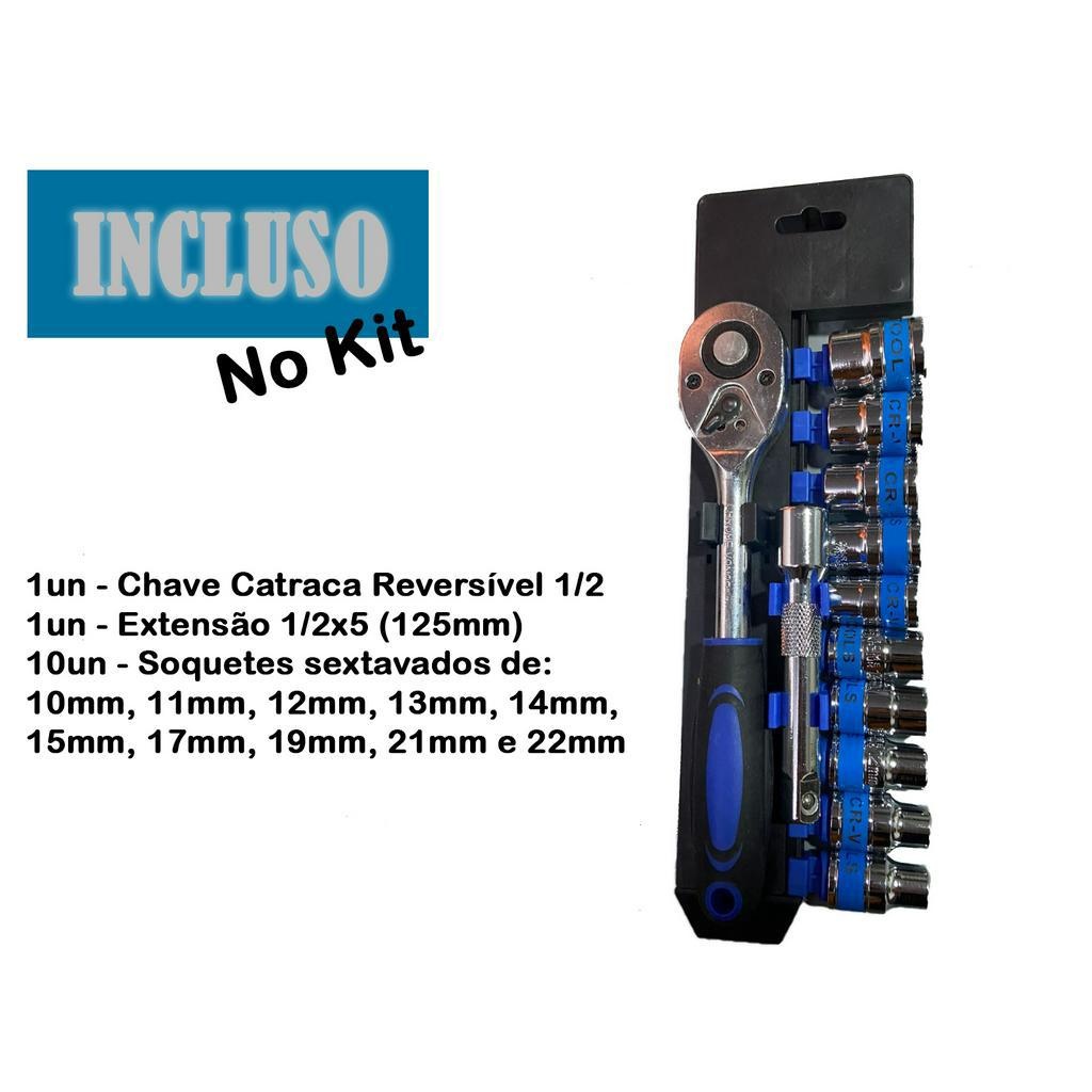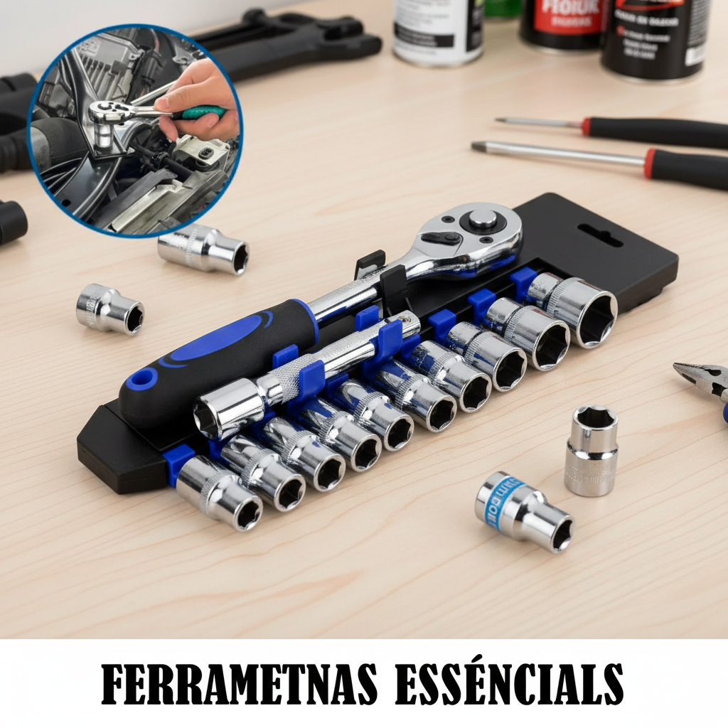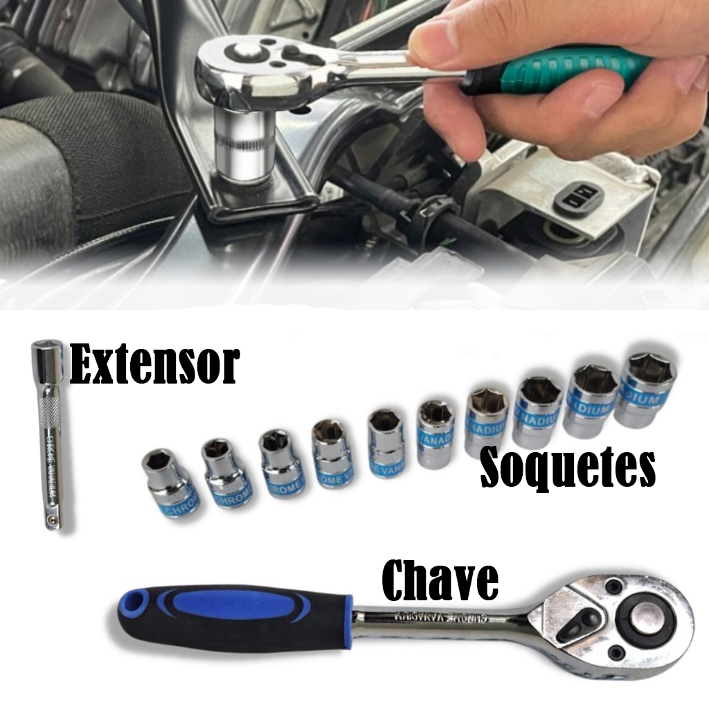 Jogo De Soquete Sextavado 1/4 Catraca 12 Peças 4 a 13mm com Extensão Kit Chave Soquete Canhão Bits