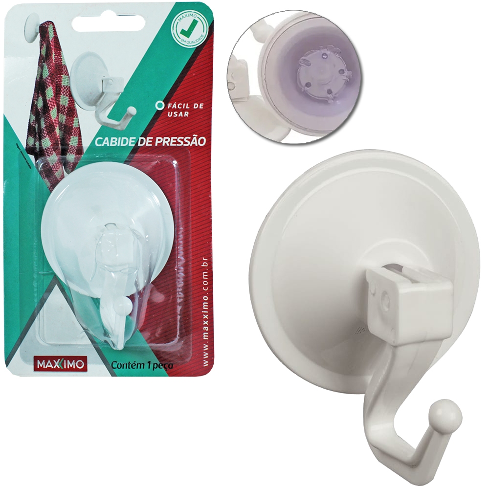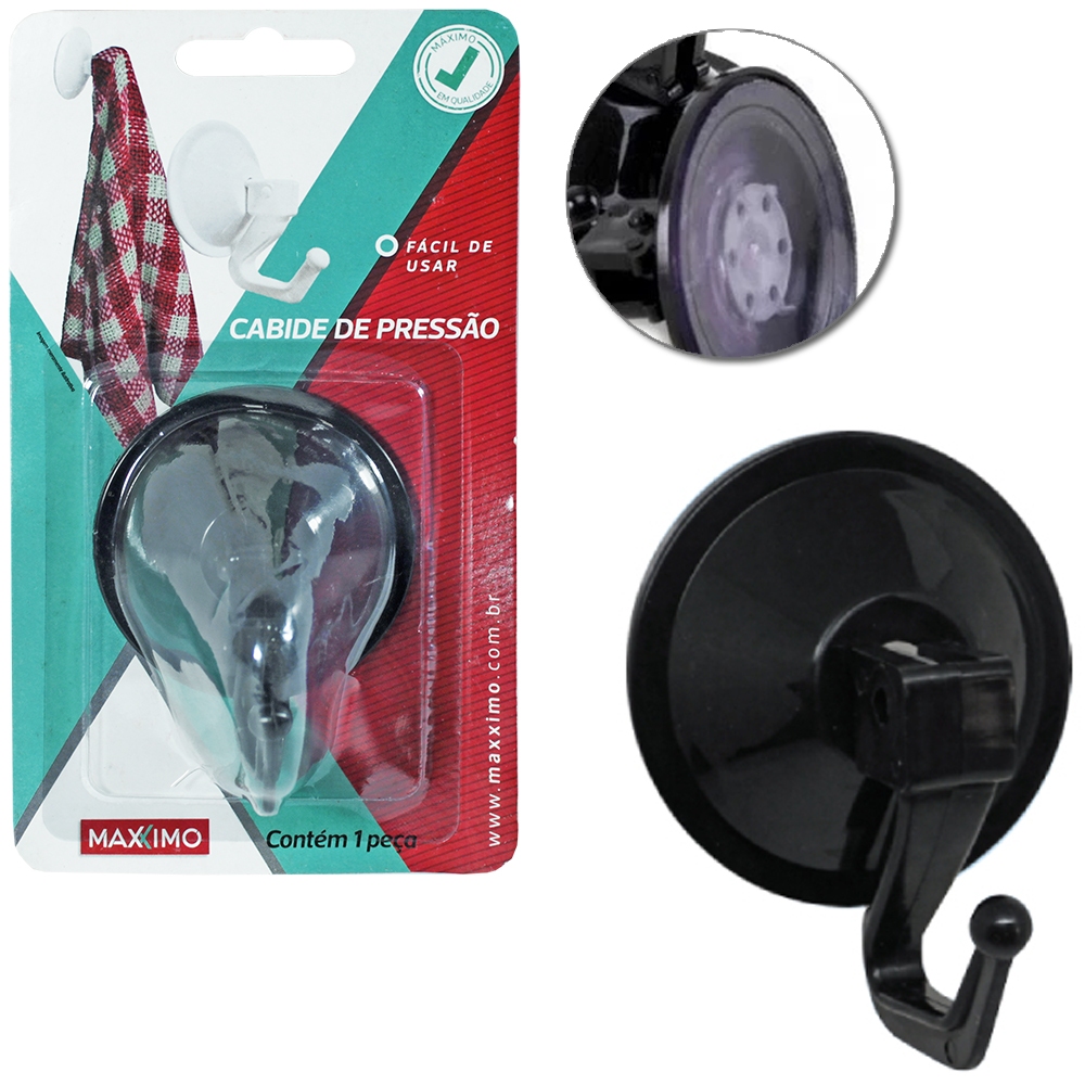 Kit com 3 Cabide Gancho Ventosa de Pressão Maxximo Preto ou Branco 8cm Sem Furo Cozinha Banheiro