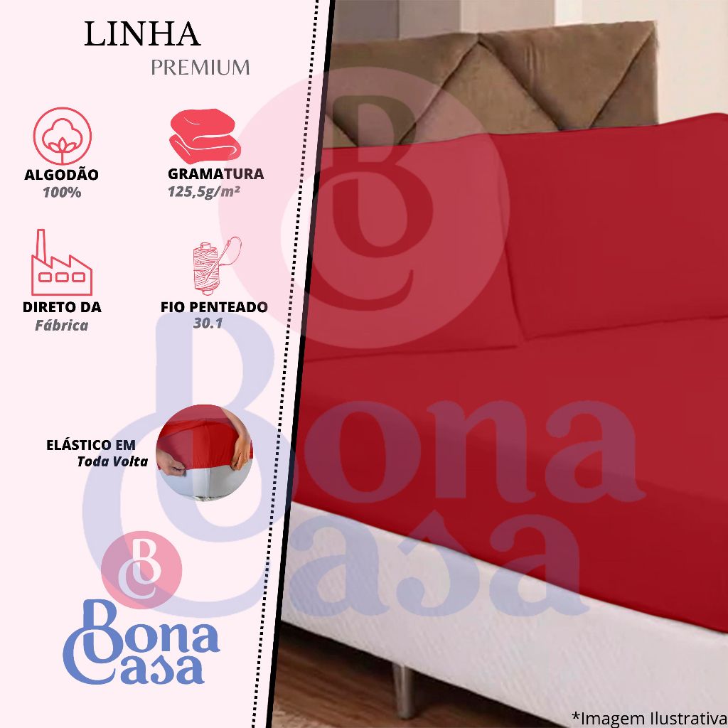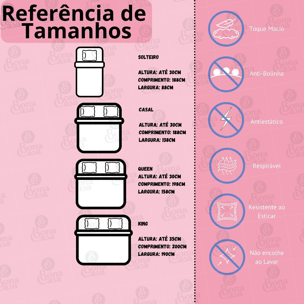 Jogo de Lençol Bona Casa Elástico e Viés Malha 100% Algodão Tamanhos Solteiro, Casal, Queen, King