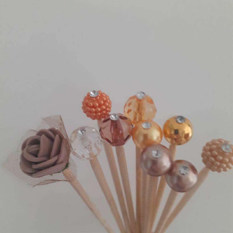 kit 10 varetas decoradas transparentes marrons douradas beges para difusor aromatizador de ambientes