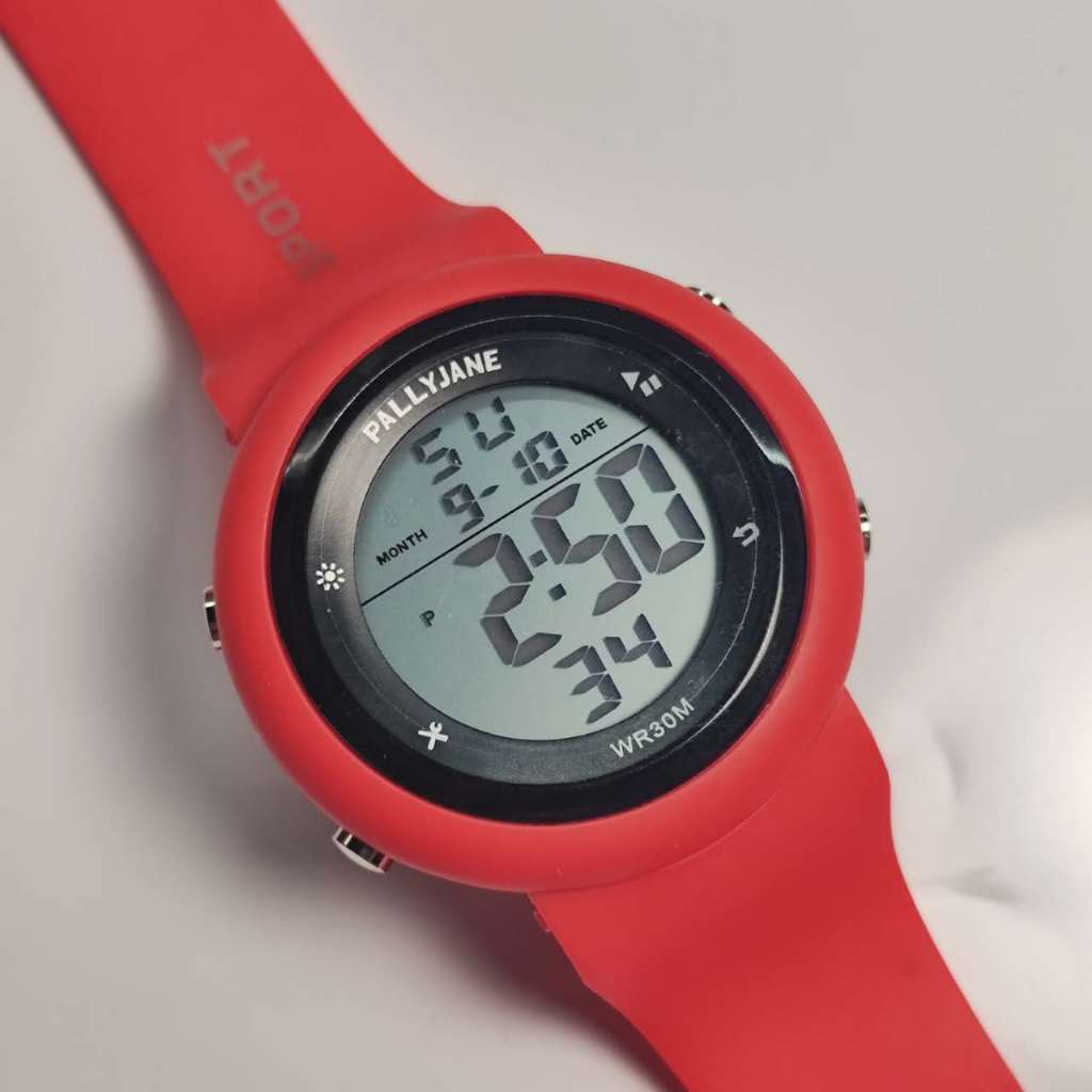 Relógio eletrônico esportivo à prova d'água Pallyjane tela cheia grande tela digital pulseira de silicone