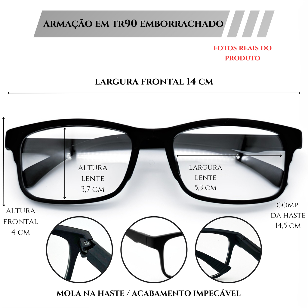 Kit 3 Óculos Leitura Grau Perto Emborrachado Lentes Descanso Leitura Presbiopia Feminino Masculino