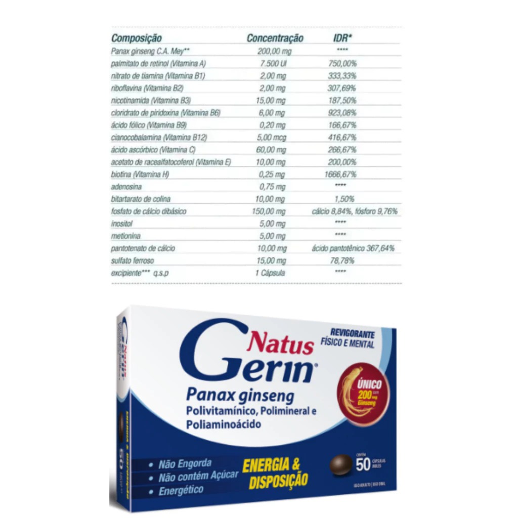 Natus Gerin panax ginseng 50 cápsulas