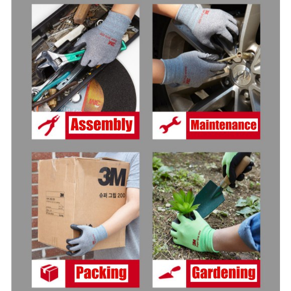 (3M) Luvas De Trabalho Conforto Espuma Nitrile Super Grip 200 Todos Os Dias/3 Tamanhos , 4 Cores