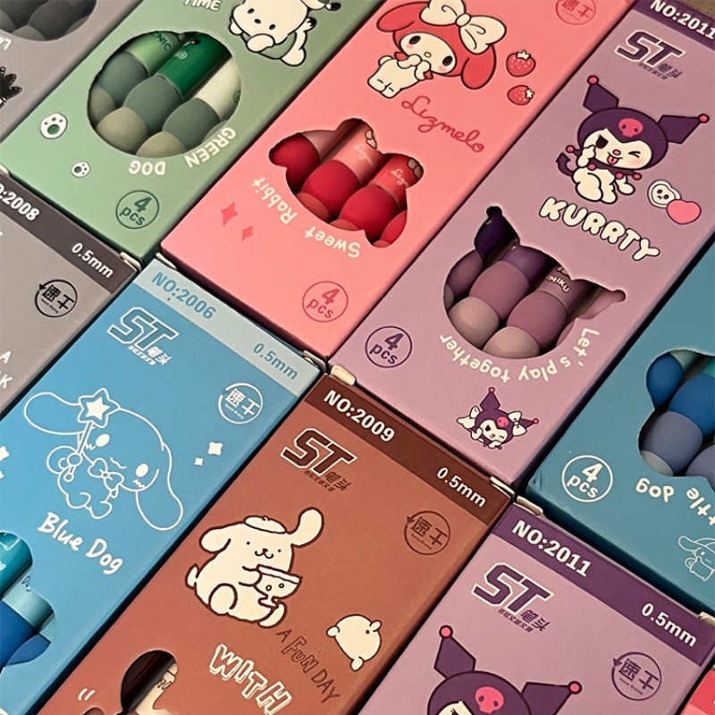 4 Unidades De Caneta De Gel De Desenho Animado Kawaii KT Kuromi Papelaria 0.5 Canetas Pretas Para Escrita De Escritório