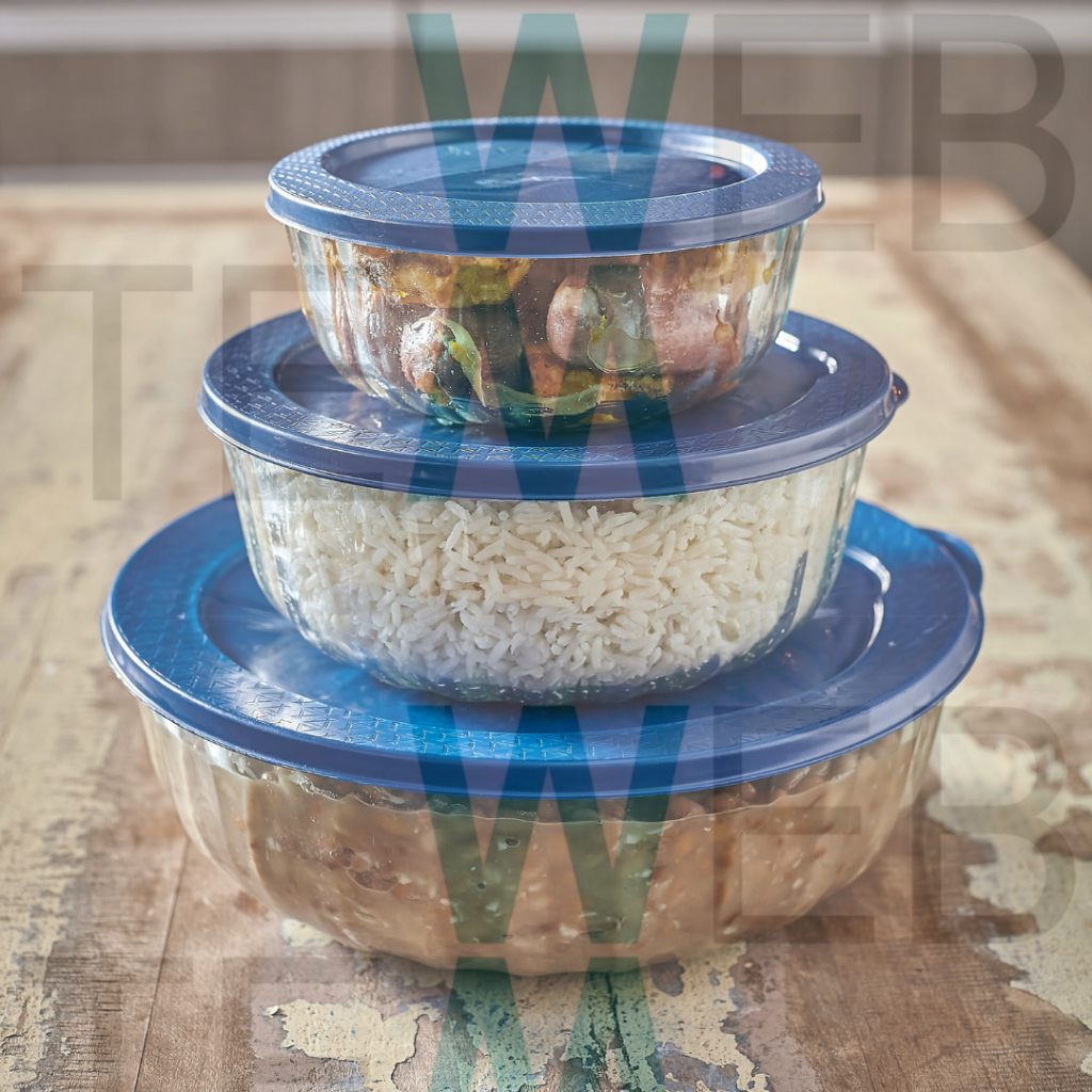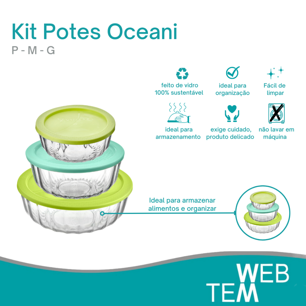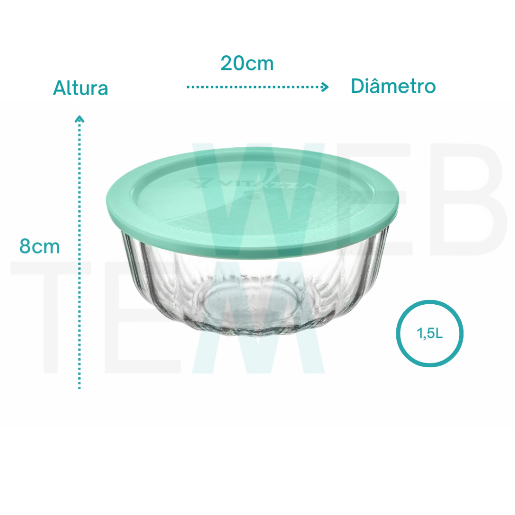 Kit 3 Potes Tigela Saladeira de Vidro com Tampa Plástica Oceani 600ml, 1,5 e 3,8L Vitazza: Servir