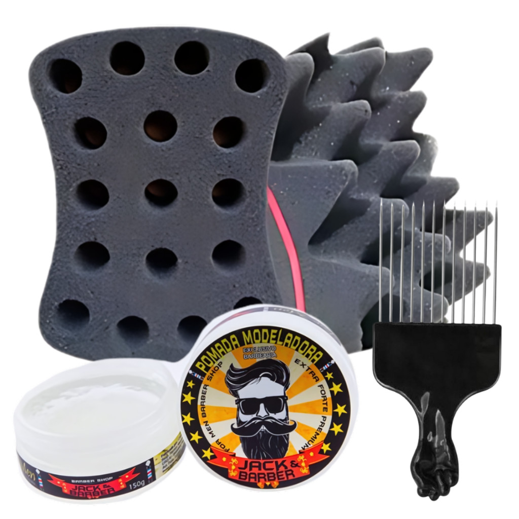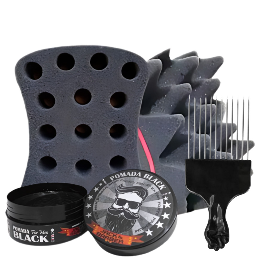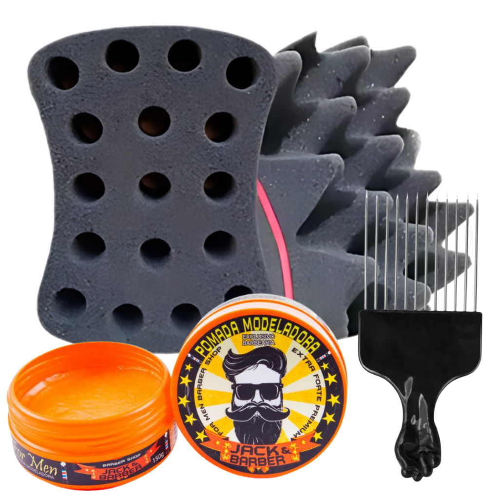 Esponja Nudred Dupla Enrolar Cabelos P 12mm + cera + Pente Afro