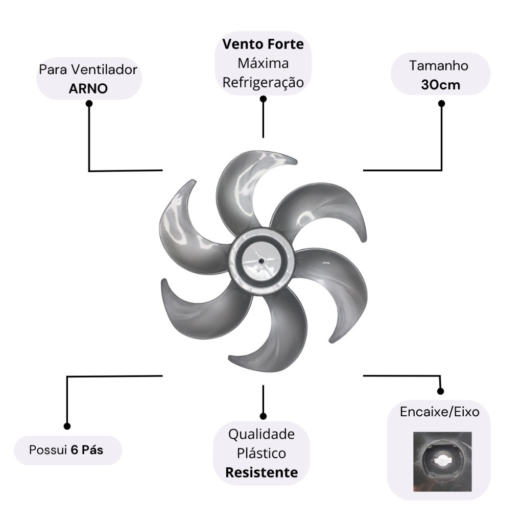 Hélice Para Ventilador Arno 30cm 6 Pás Prata Turbo Silencio Force VF30 TS30 SF30