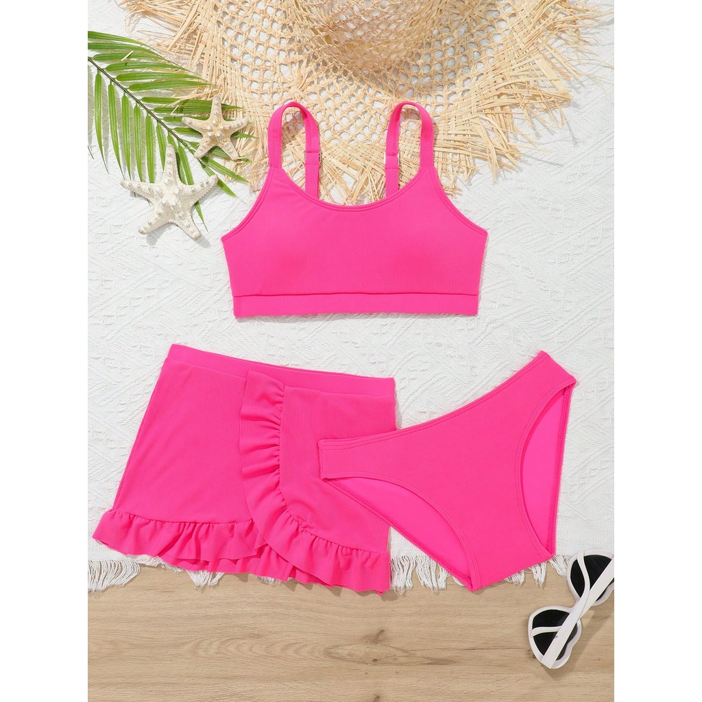 RWX VEST Conjunto Praia Juvenil: Biquíni com Saída de Praia Canelada em Cor Lisa 2025 - J3028