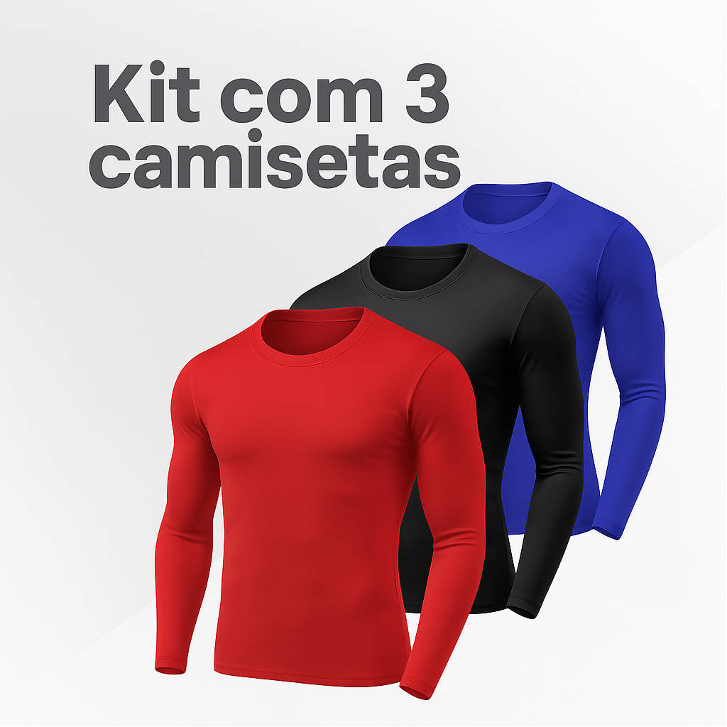 Kit 3 Camisetas Térmicas UV Segunda Pele Proteção Solar