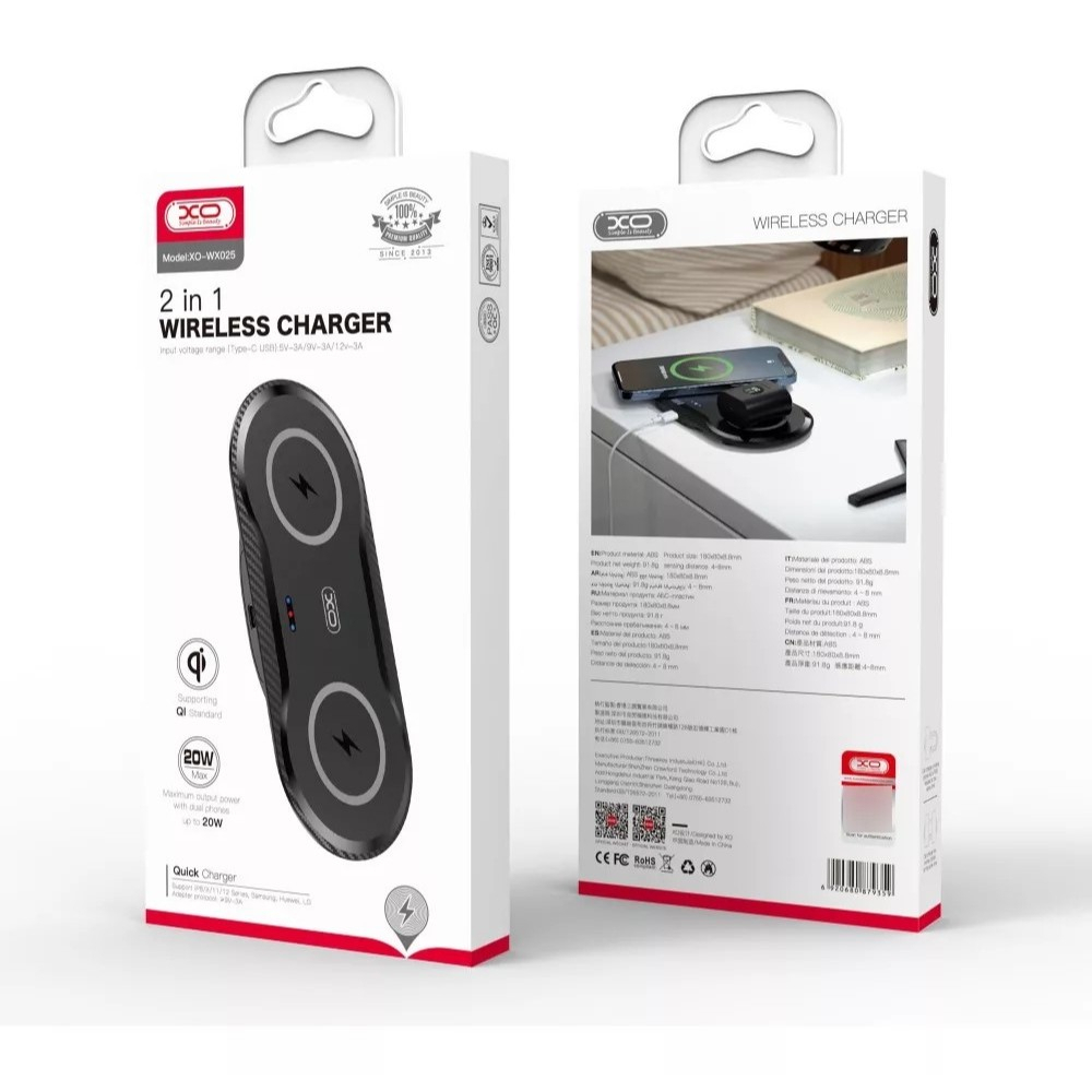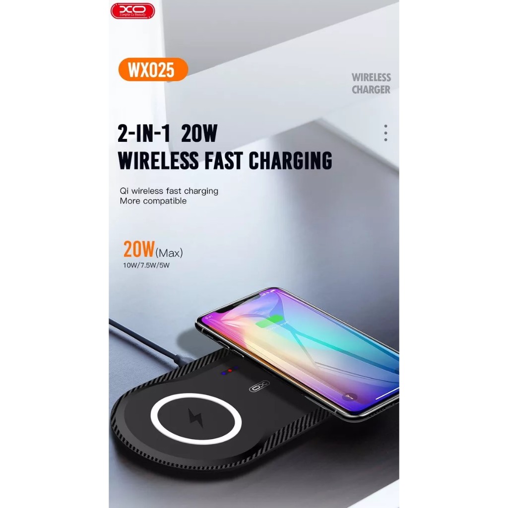XO-WX025 - Carregador Por Indução Qi 20W 2Em1