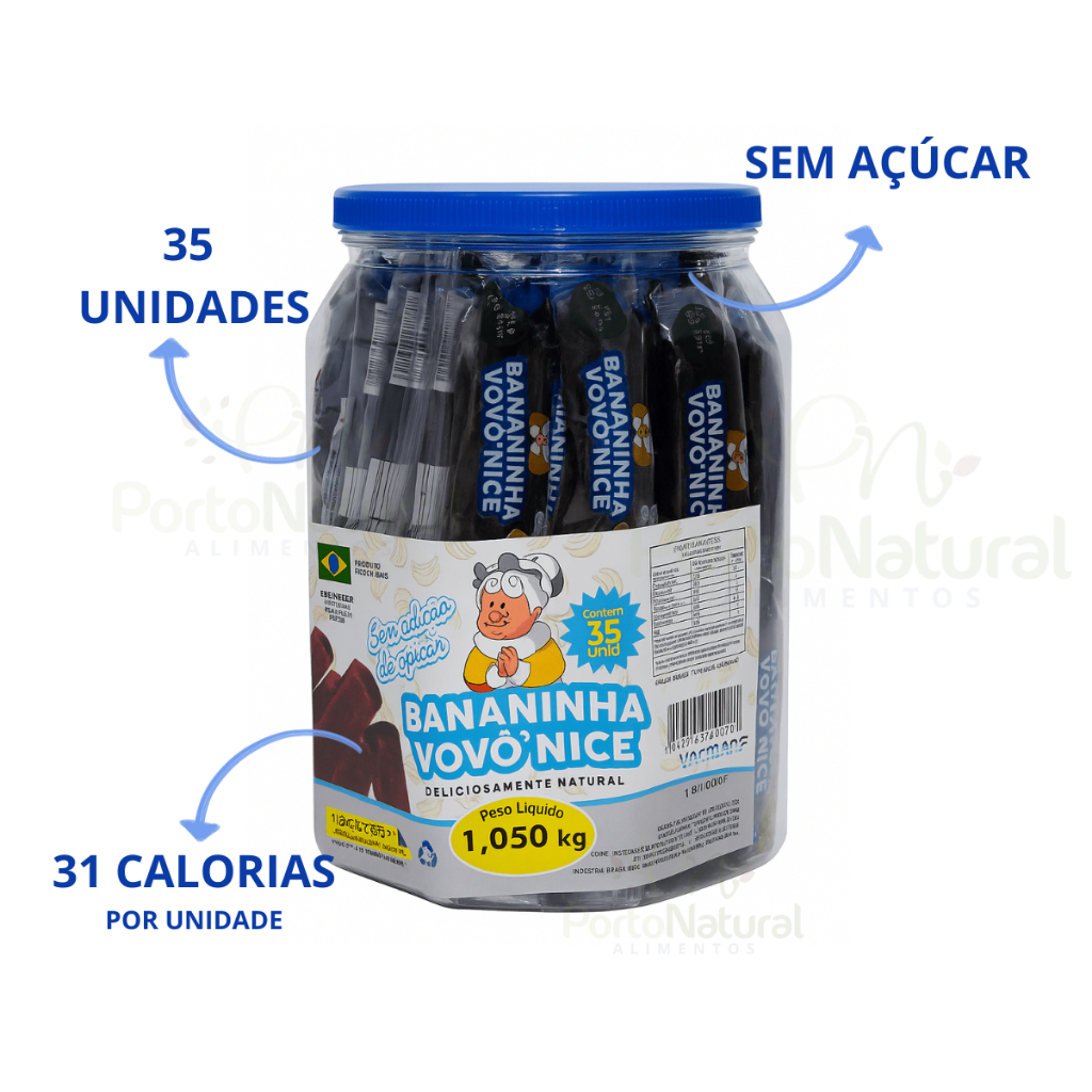 Bananinha Sem Açúcar POTE com 35 unidades e 31 calorias - Vovó Nice -1,050 Kg