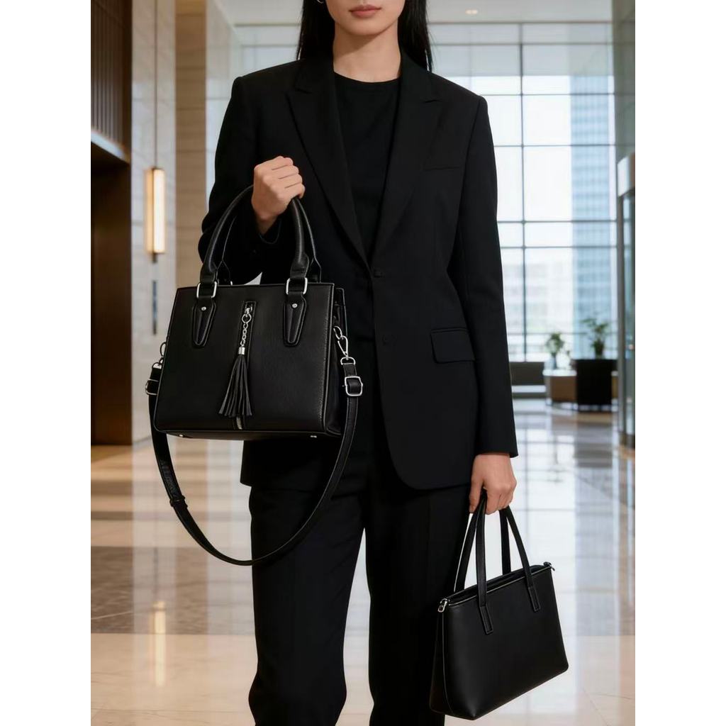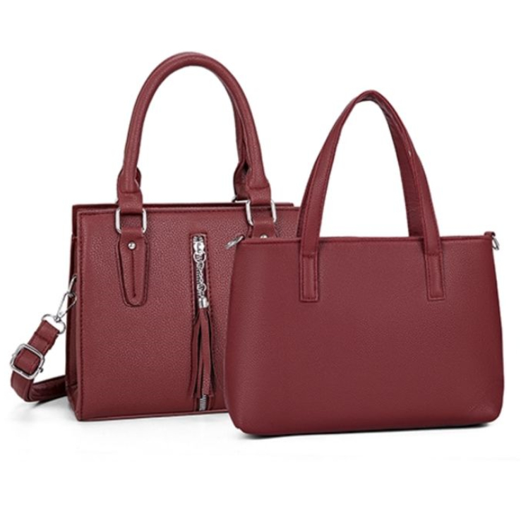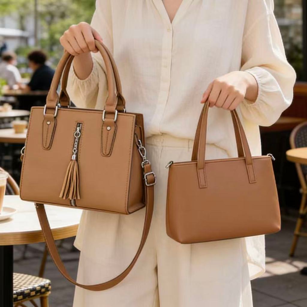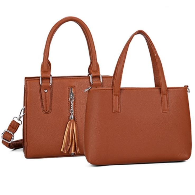 Kit 2 de Bolsas Feminina Ombro Com Alça Lateral Transversal De Couro Simples Com Detalhe De Tassel Handbag B316 LING
