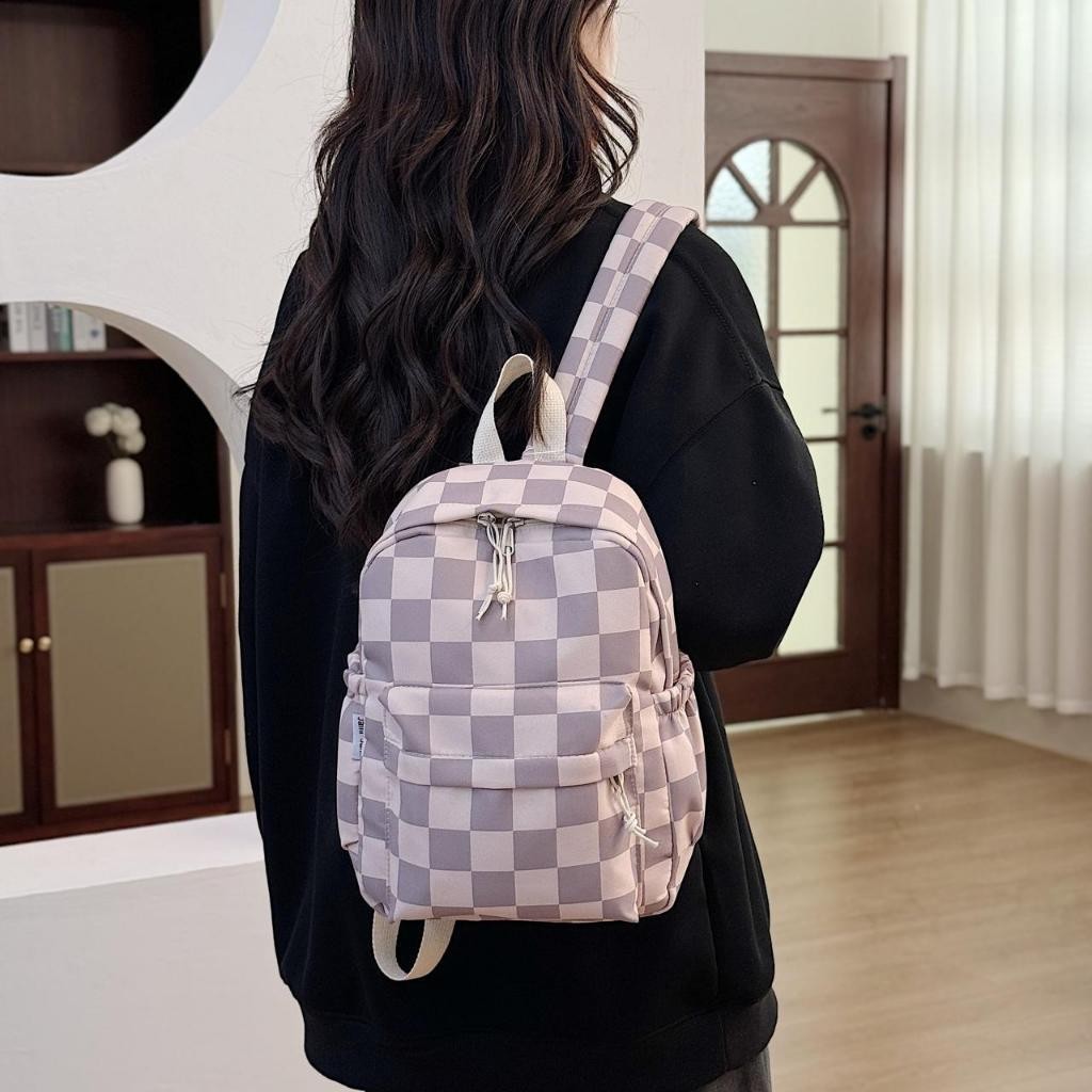 Mochila Feminina Escolar Universitária De Viagem Moda Casual Xadrez Unissex X104 LING