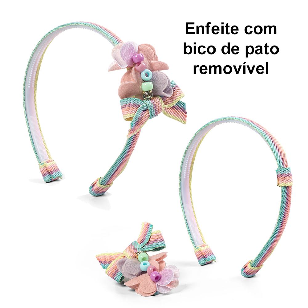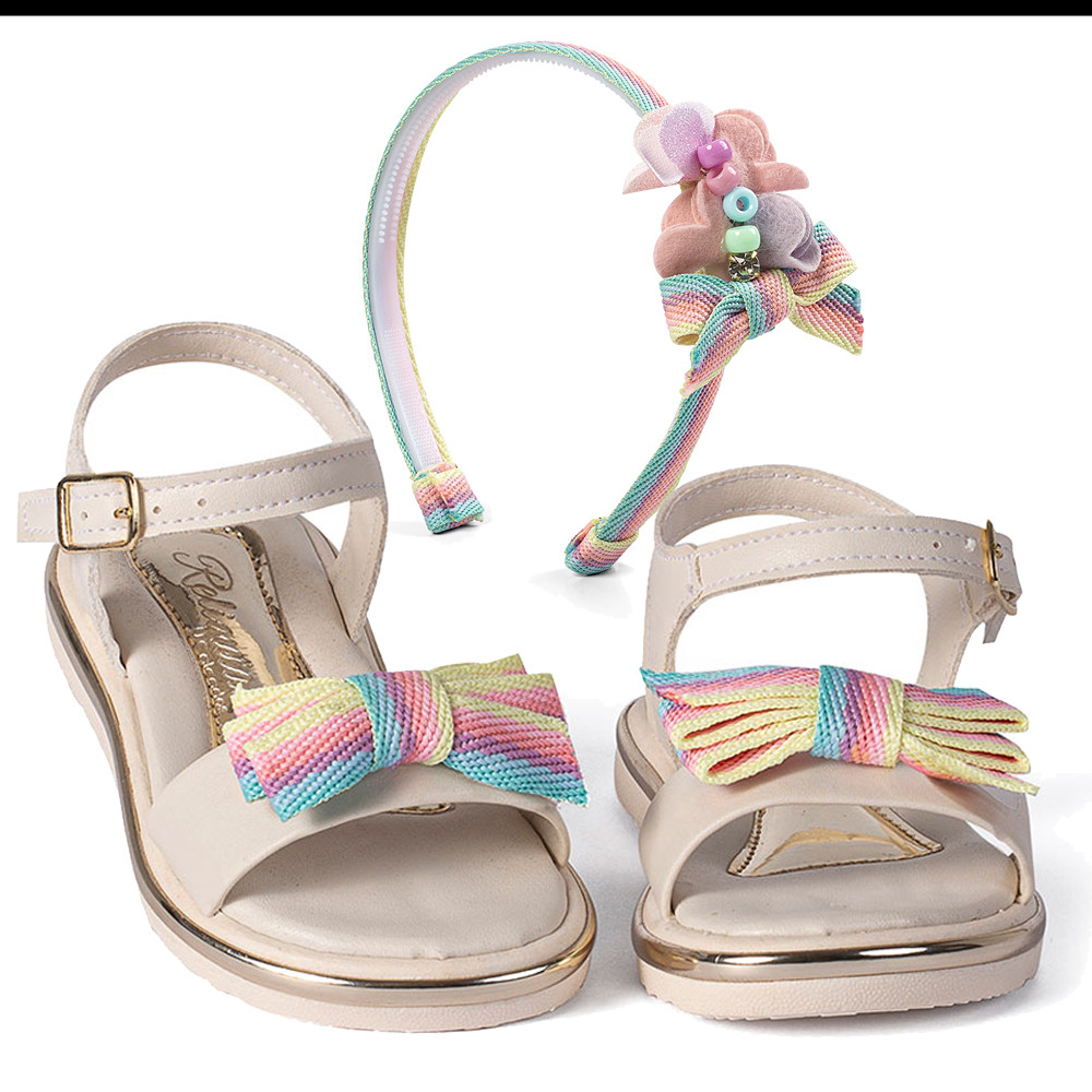 Kit Sandália Infantil Arquinho Unicórnio Laço Colorido Promoção Delicada Original 20 a 34