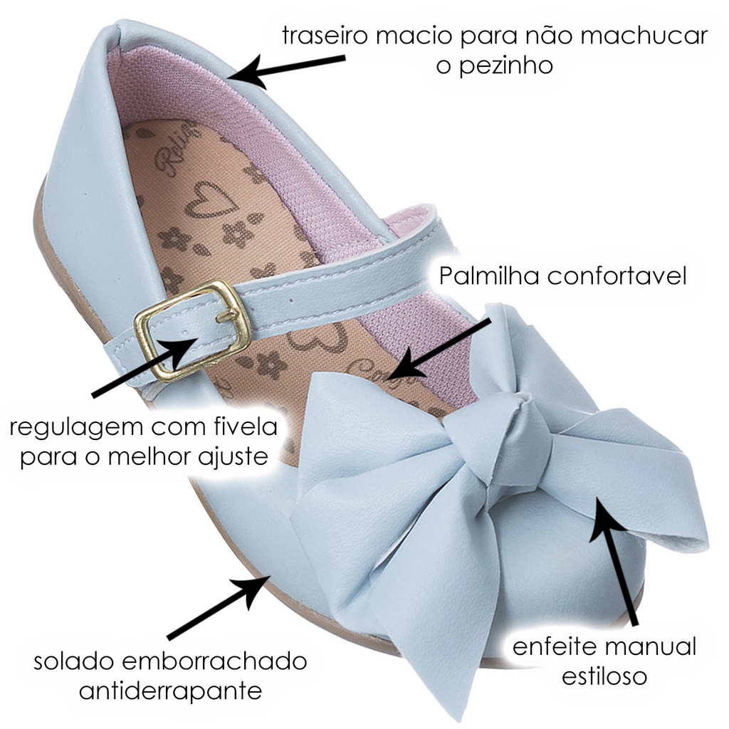 Sapatilha Boneca Infantil Menina Azul Laço Cata-vento Original Promoção Casual Moda Confortável