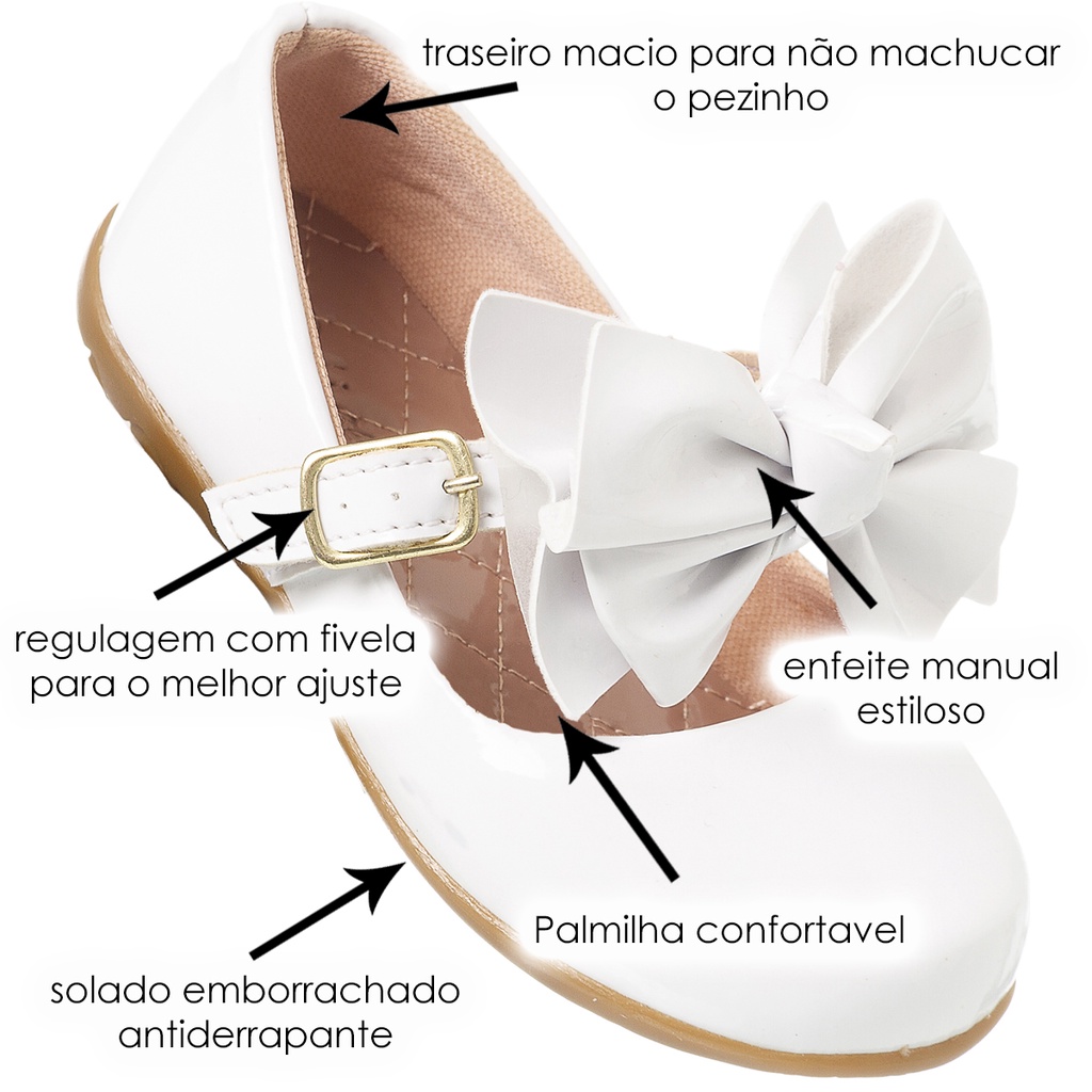 Sapatilha Feminina Infantil Boneca Sapato Menina Branco Laço Grande Promoção Original Delicada