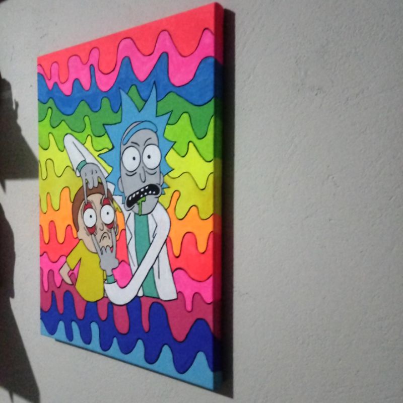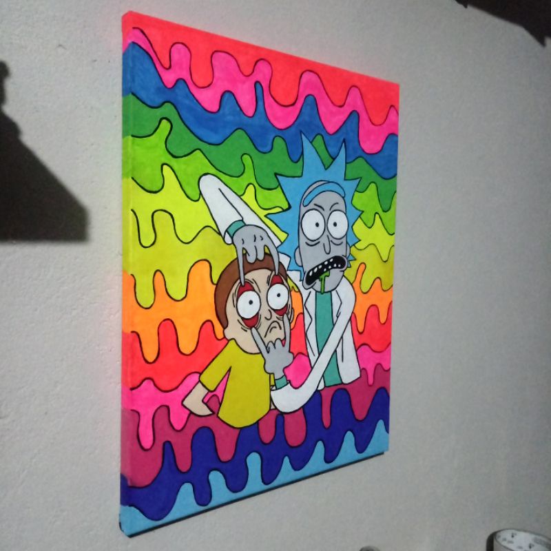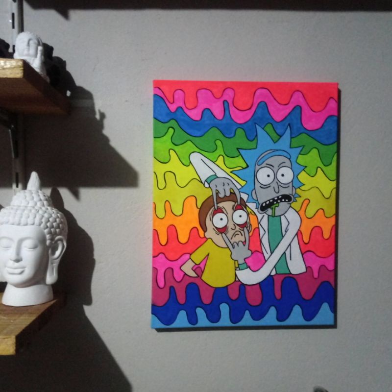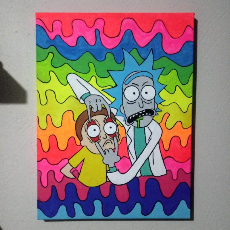 Tela Pintura a Mão Rick and Morty 30x40 Psychedelic Decoração Quarto Sala Escritório