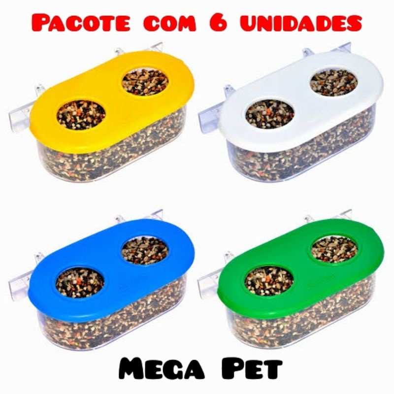 Comedouro 2 furos Pássaro com Gancho Cristal Pacote com 6 unidades