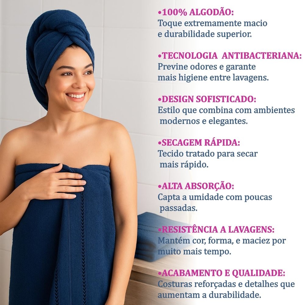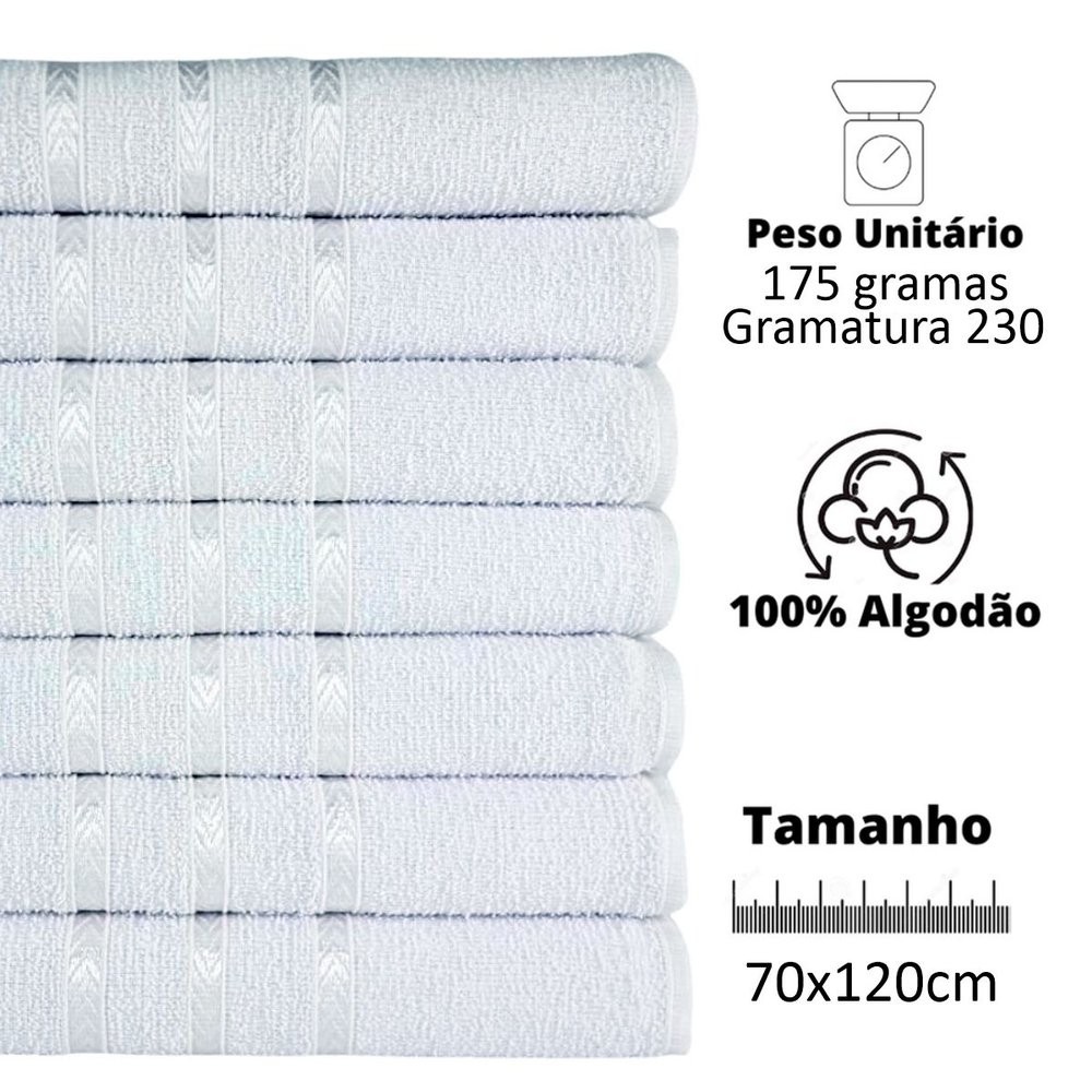 Kit 05 Toalha de Banho 70x120cm 230g/m² Macia com Alta Absorção Atacado