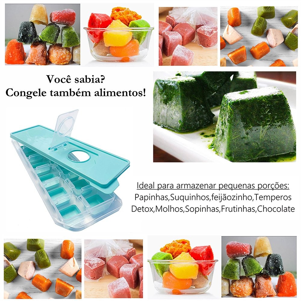 Kit 2 Pc Forma de Gelo com Tampa Fundo em Silicone Porta Papinha Aba Enche Fácil Resistente BPA FREE