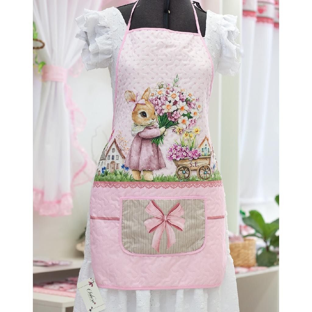 Avental Para Cozinha Matelado Estampa De Páscoa Digital Coelhinha Rose