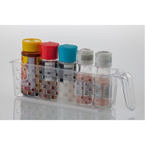 Cesta Organizadora Com Alça Para Geladeira Bebidas Latas , Organizando dispensas Armario Banheiro Temperos etc Uso Geral 28x8x8 - Unidade