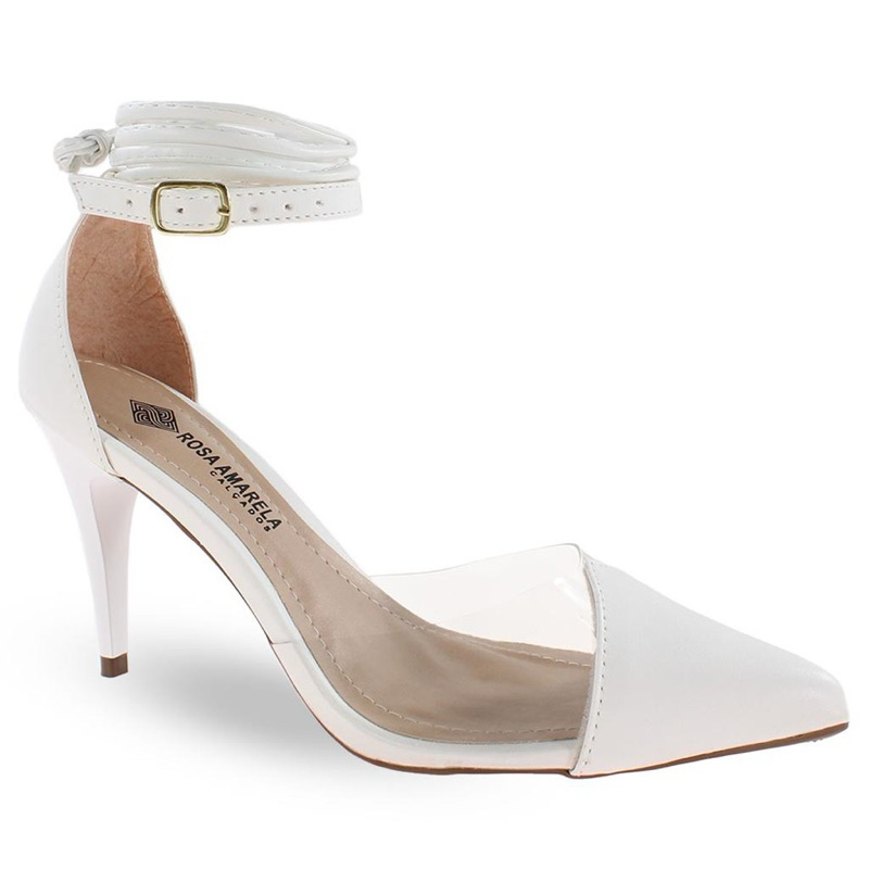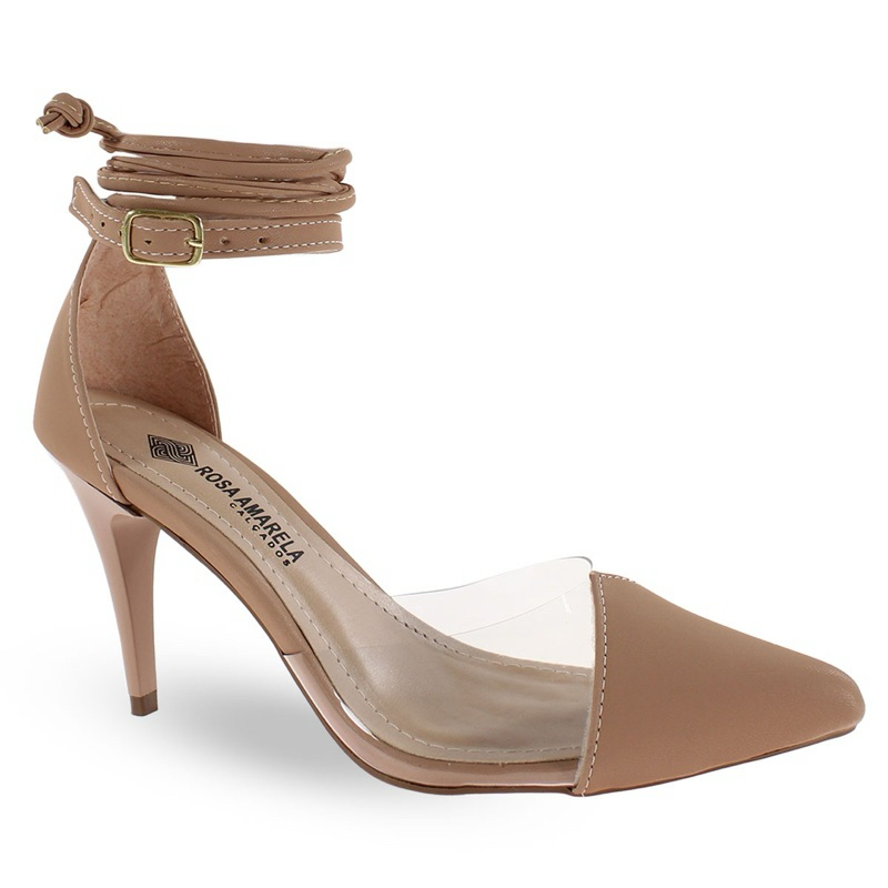 Scarpin Feminino Preto,Nude e Branco Com Amarração Dupla e Vinil Salto Fino Primavera/Verão Têndencia Elegante