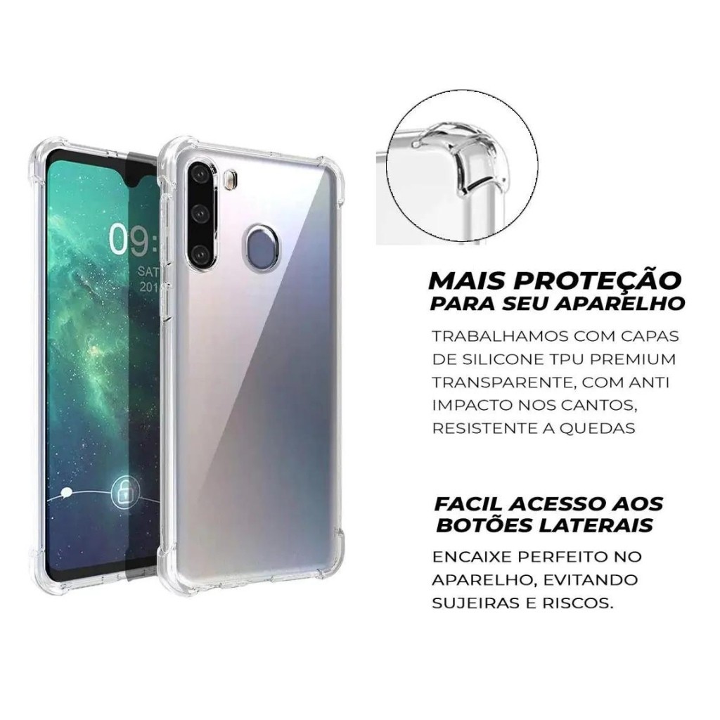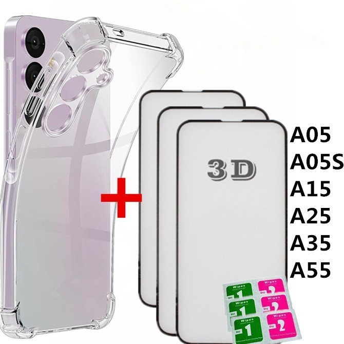Capa Transparente TPU Anti Shock + Pelicula Vidro 3D Para Samsung A05 A05S A15 A25 A35 A55
