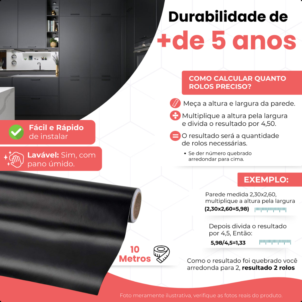 Papel de Parede 10 METROS X 45 CM Preto Fosco Adesivo de Parede Adesivo de Móveis Lavável