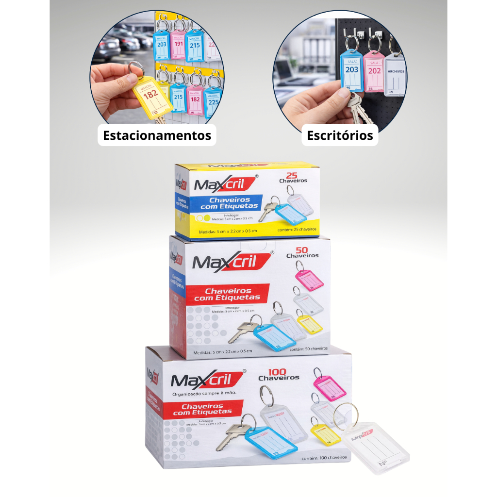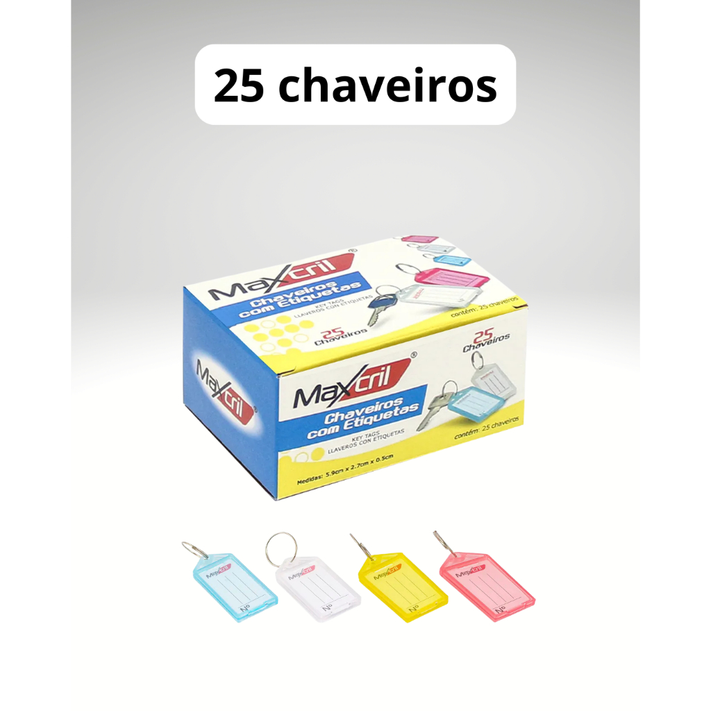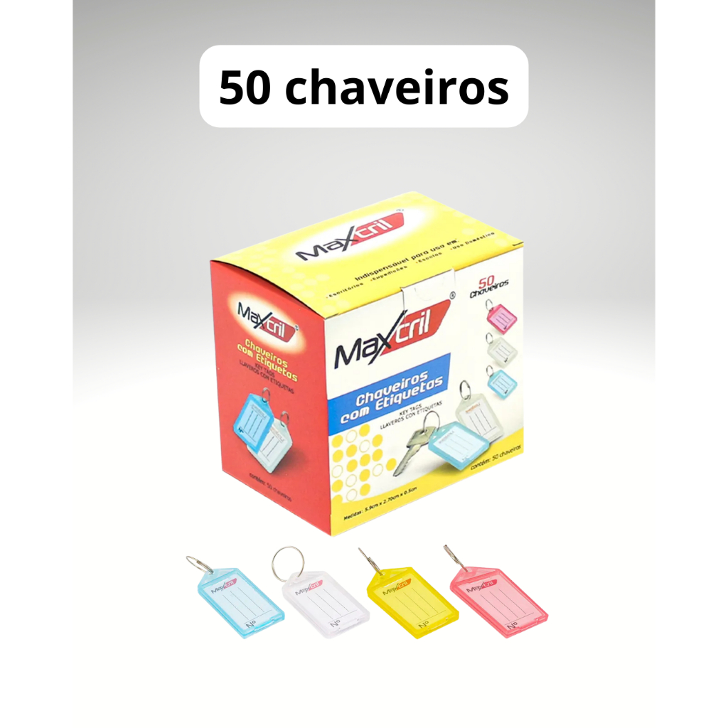 Chaveiro Identificador de Chaves com Etiqueta Maxcril - Kit Organizador de chaves Multicolorido