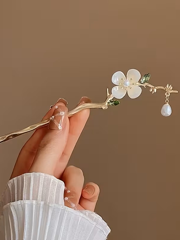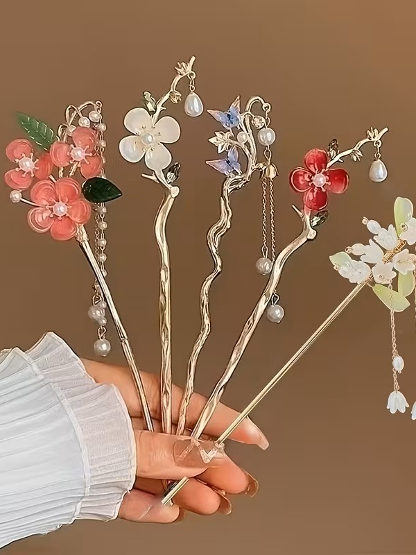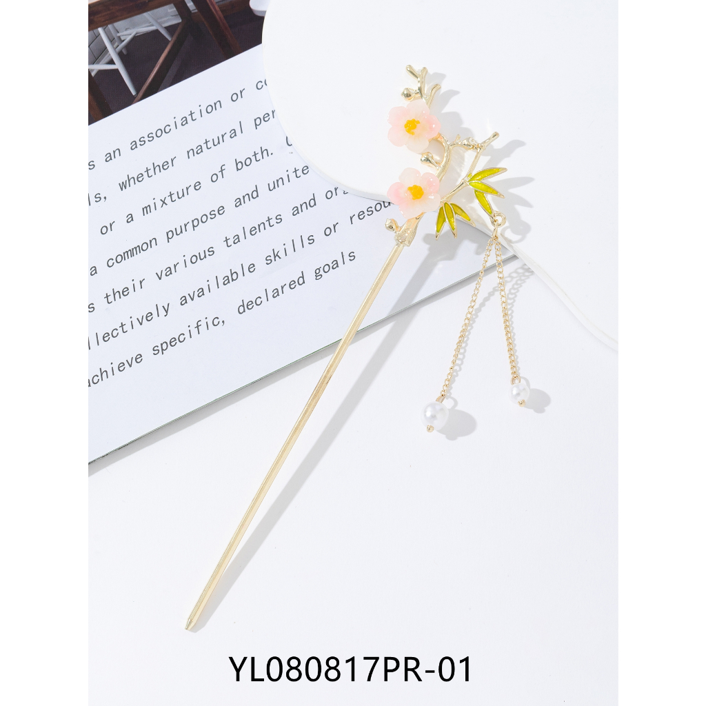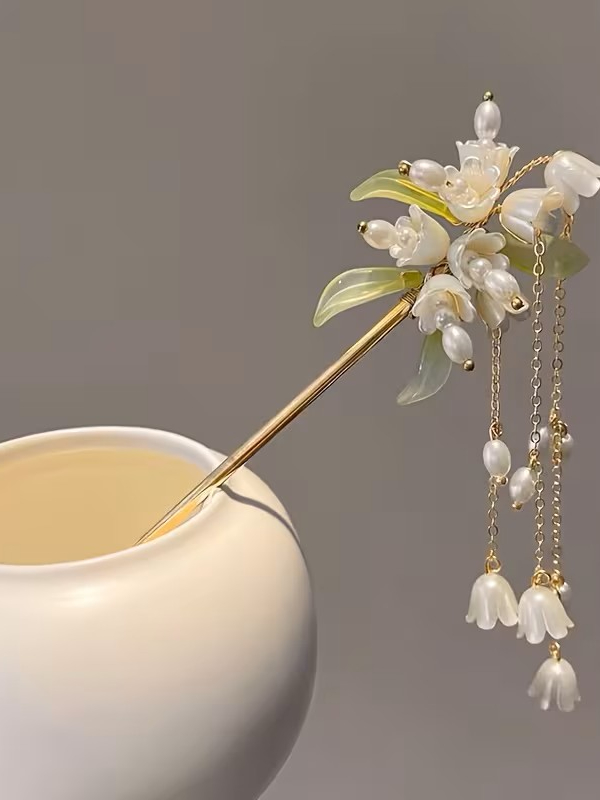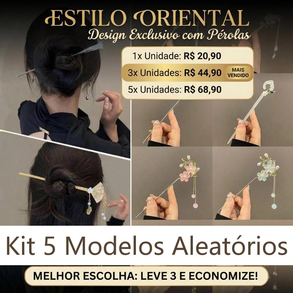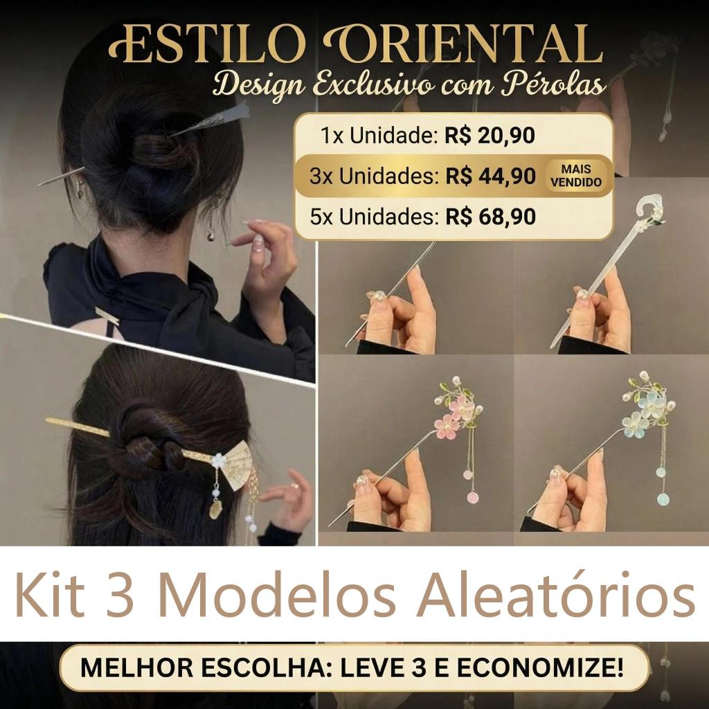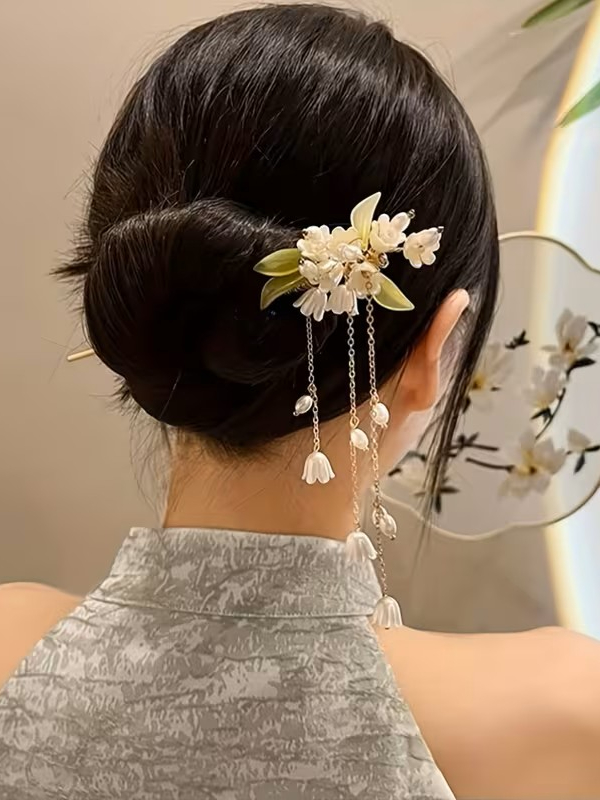 Grampo Pente de Cabelo Oriental com Pingente e Franja Chinês Estilo Hanfu - Festa Dia das Mães
