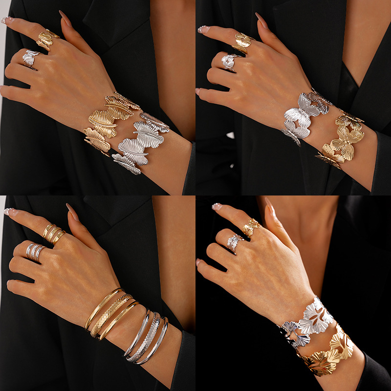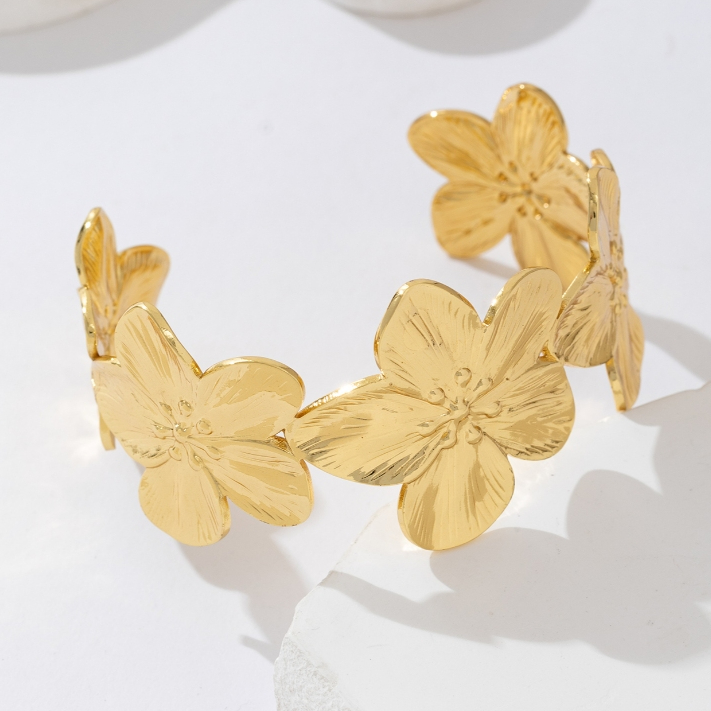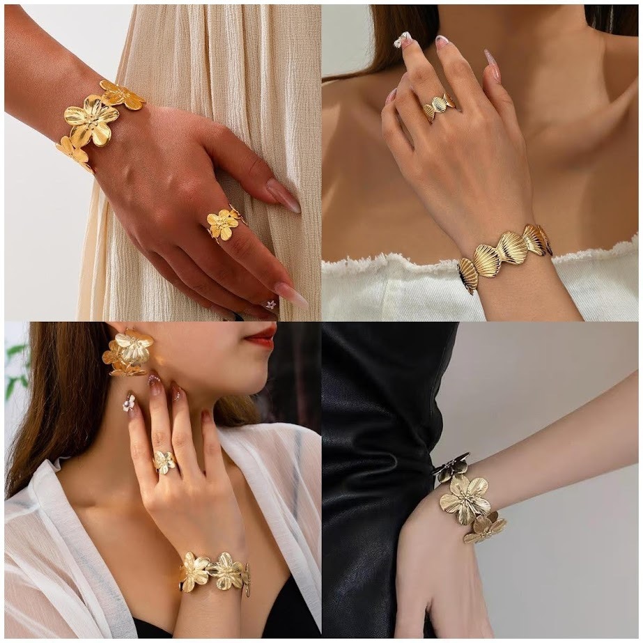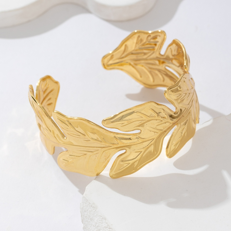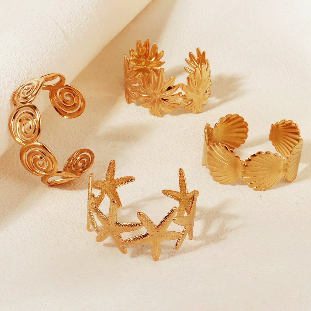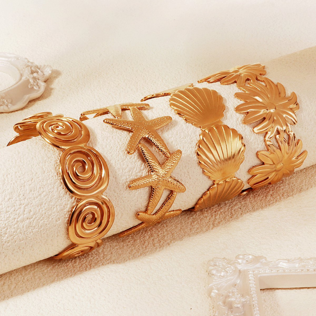 Pulseiras de Aço Inoxidável 316L Douradas Com Modelos Incluem designs de flores, borboletas, folhas