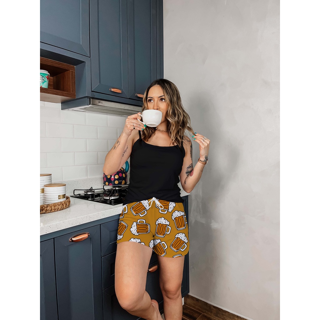 Pijama Feminino Baby Doll Preto Estampa Cerveja Adoro uma Gelada