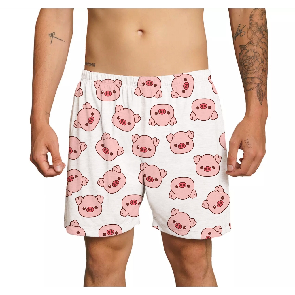 Pijama Baby Doll Casal Mozão Combinando Porquinho + Bermuda Masculina
