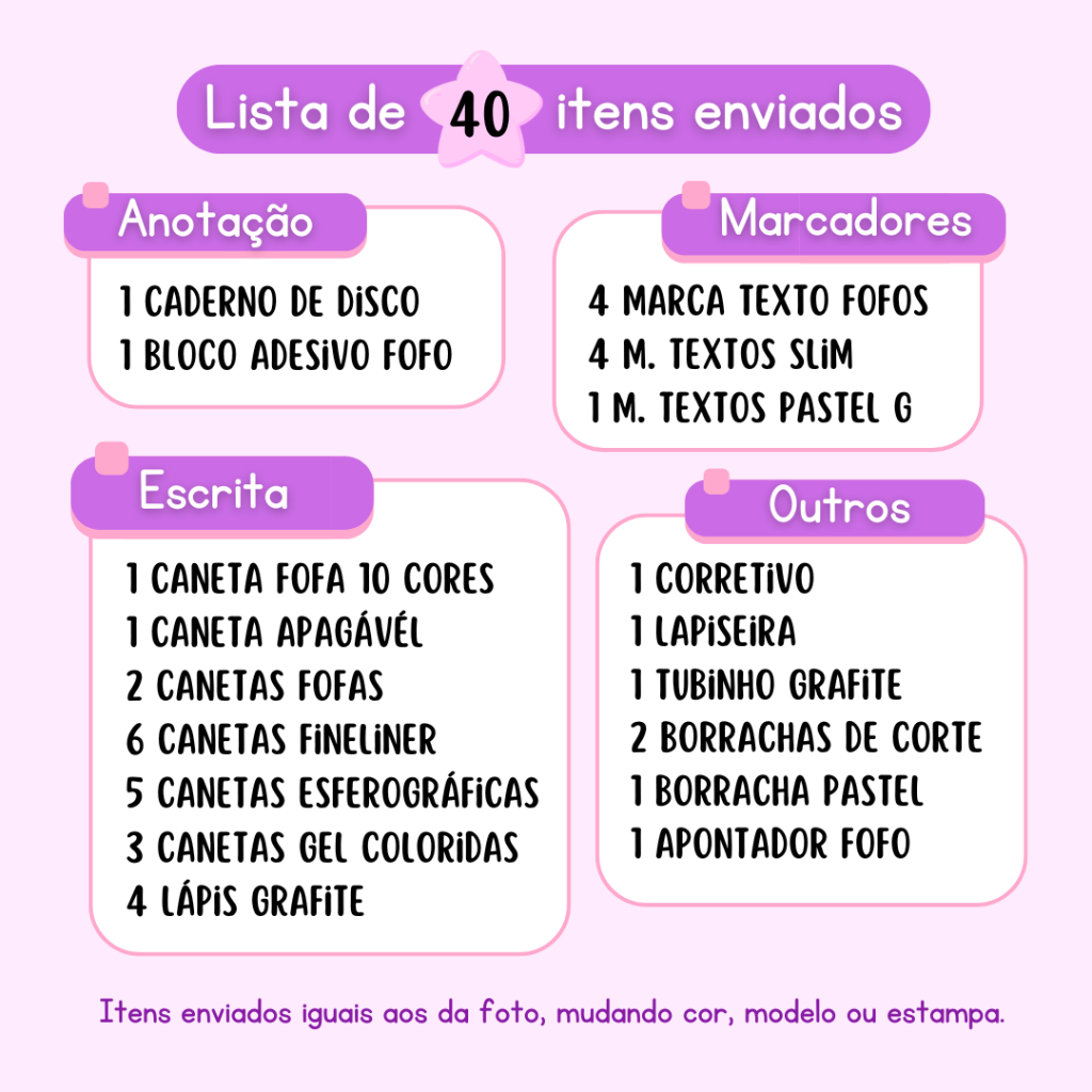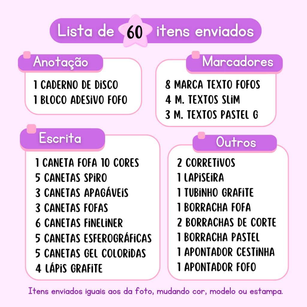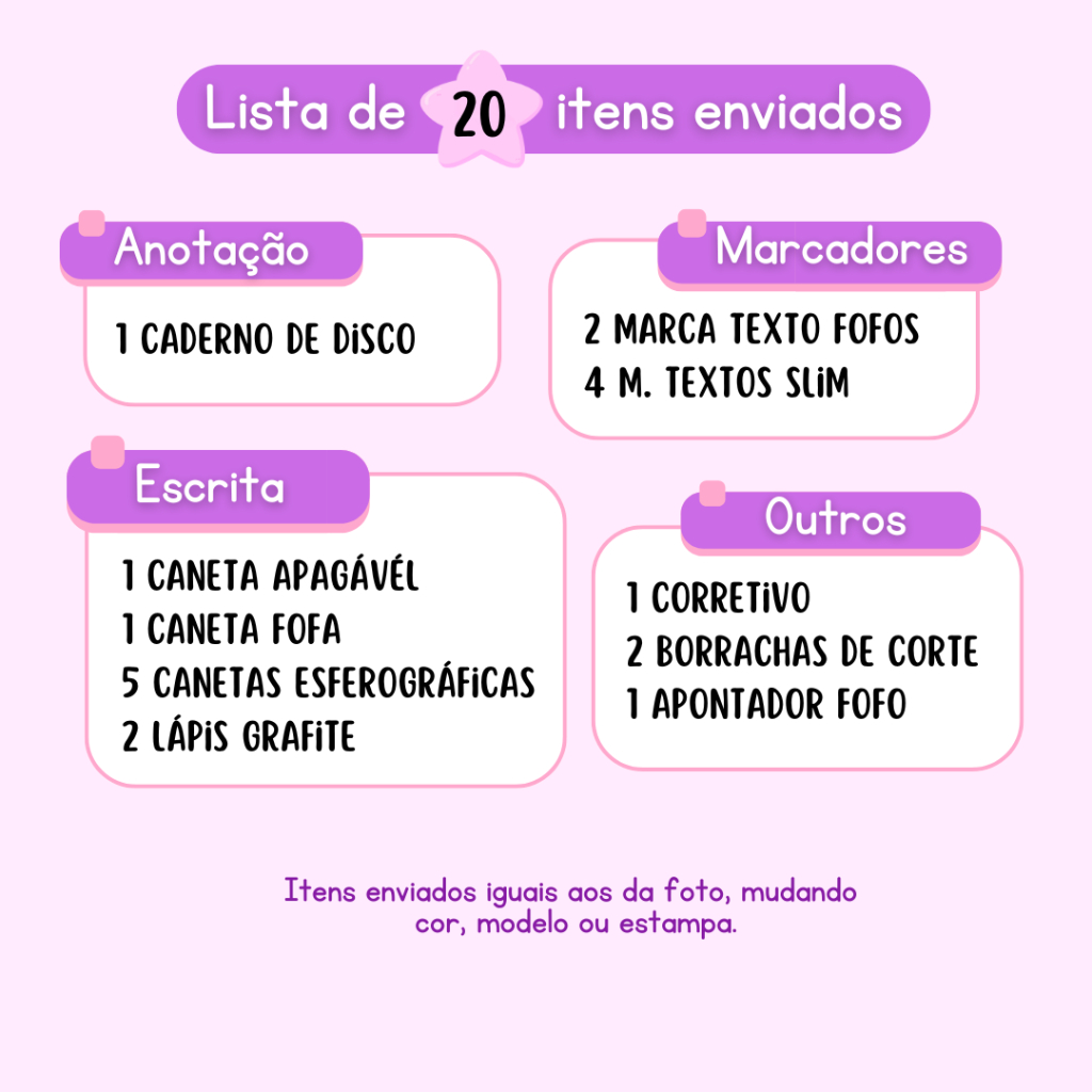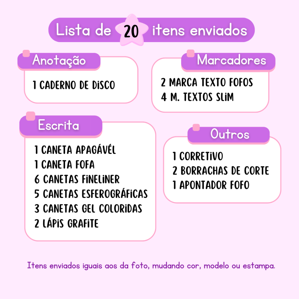 Kit Papelaria Kawaii Fofo Caderno Sortido de Disco Material Escolar Pastel Presente Volta ás Aulas KTPPC-19